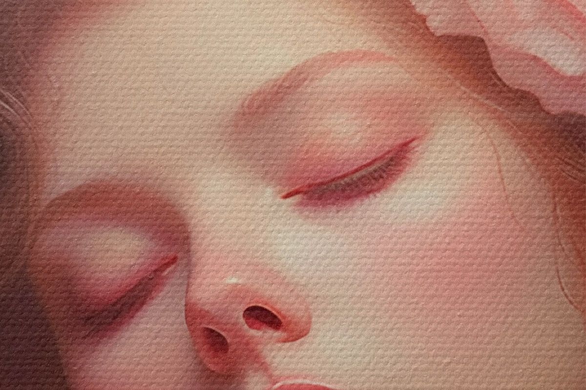 Țesătura fină a firelor de pe această pânză seamănă cu suprafața pânzelor artiștilor profesioniști.
