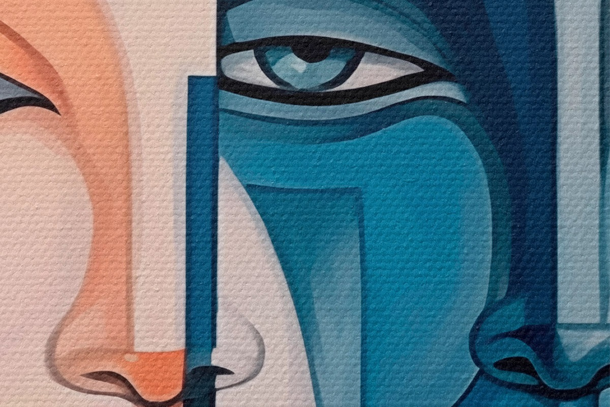 Pentru a întinde pânza pe barele de întins fără a deteriora imaginea, folosim o imagine în oglindă.