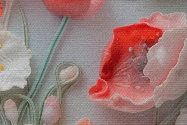 Țesătura fină a firelor de pe această pânză seamănă cu suprafața pânzelor artiștilor profesioniști.