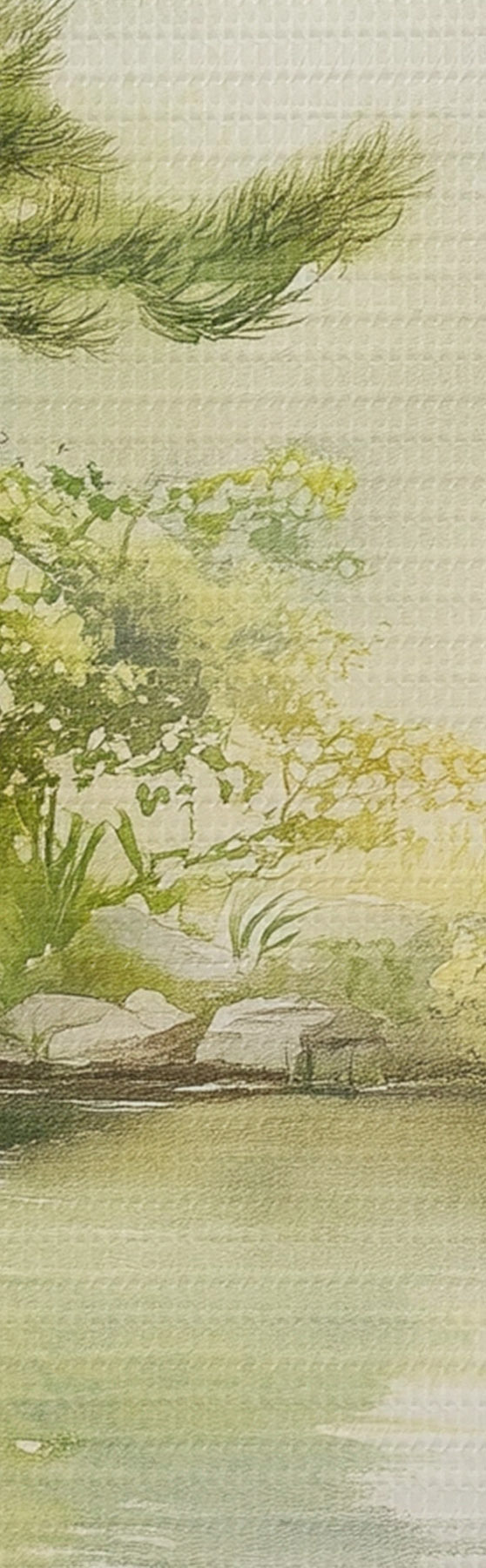 Picturi rotunde Grădină orientală cu lac și copaci, natură, stil acuarelă r44313