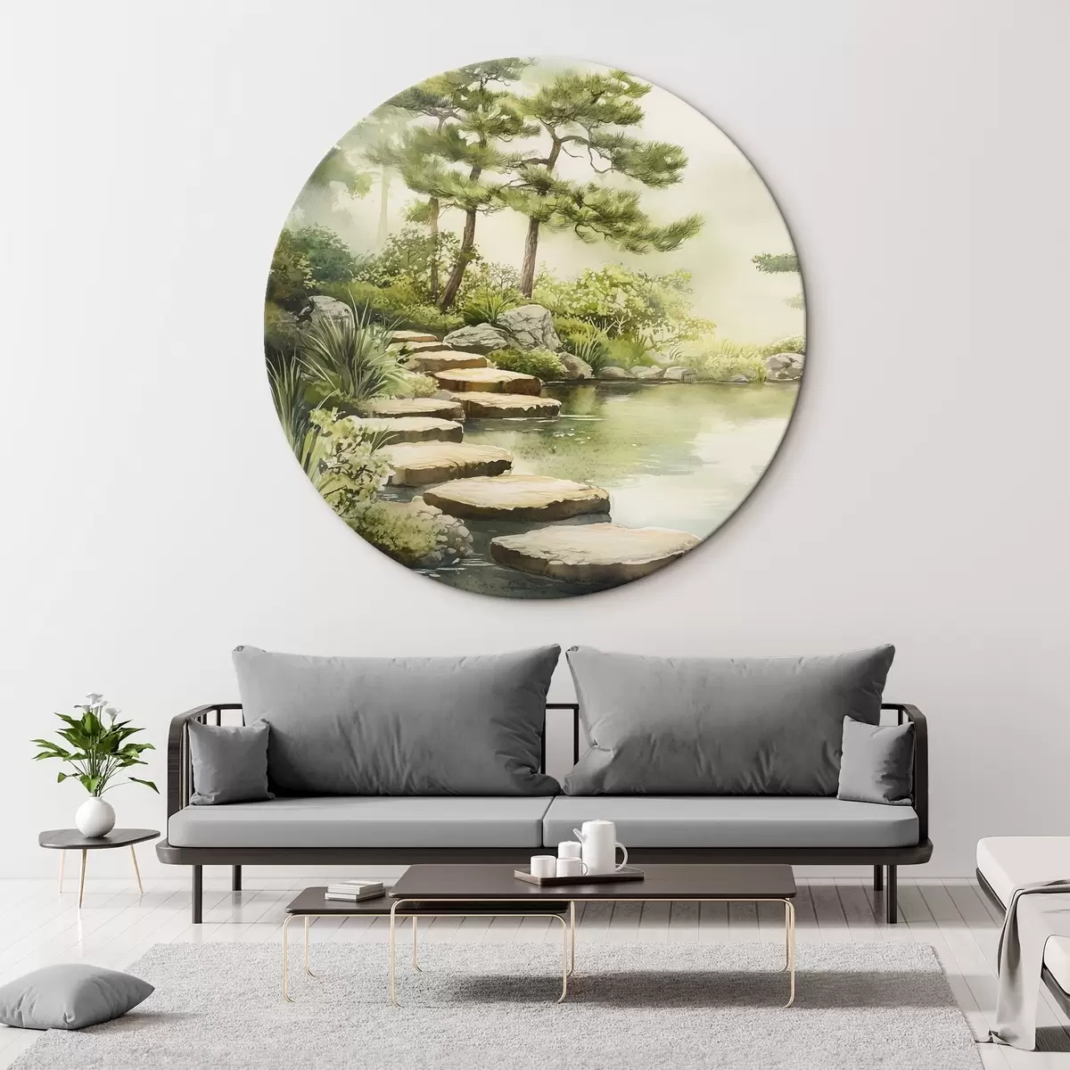 Picturi rotunde Grădină orientală cu lac și copaci, natură, stil acuarelă r44313
