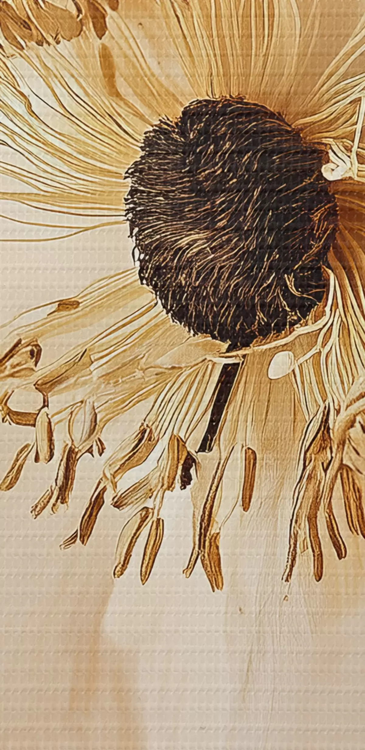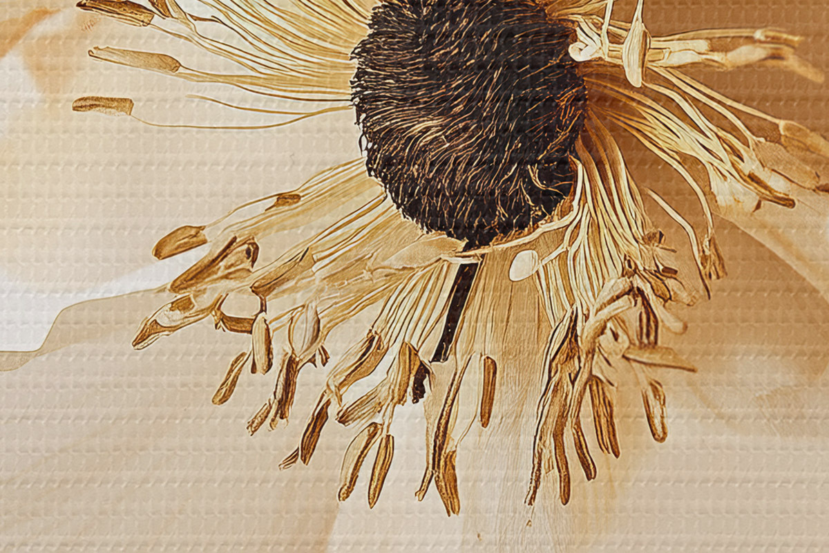 Țesătura fină a firelor de pe această pânză seamănă cu suprafața pânzelor artiștilor profesioniști.