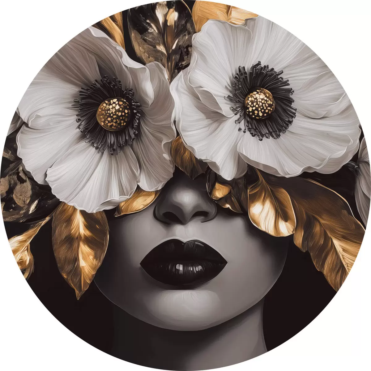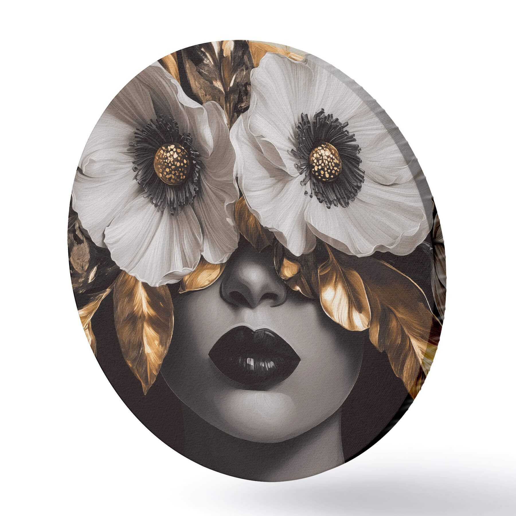Picturi rotunde Portret semi-abstract al unei femei cu flori Nr r44365