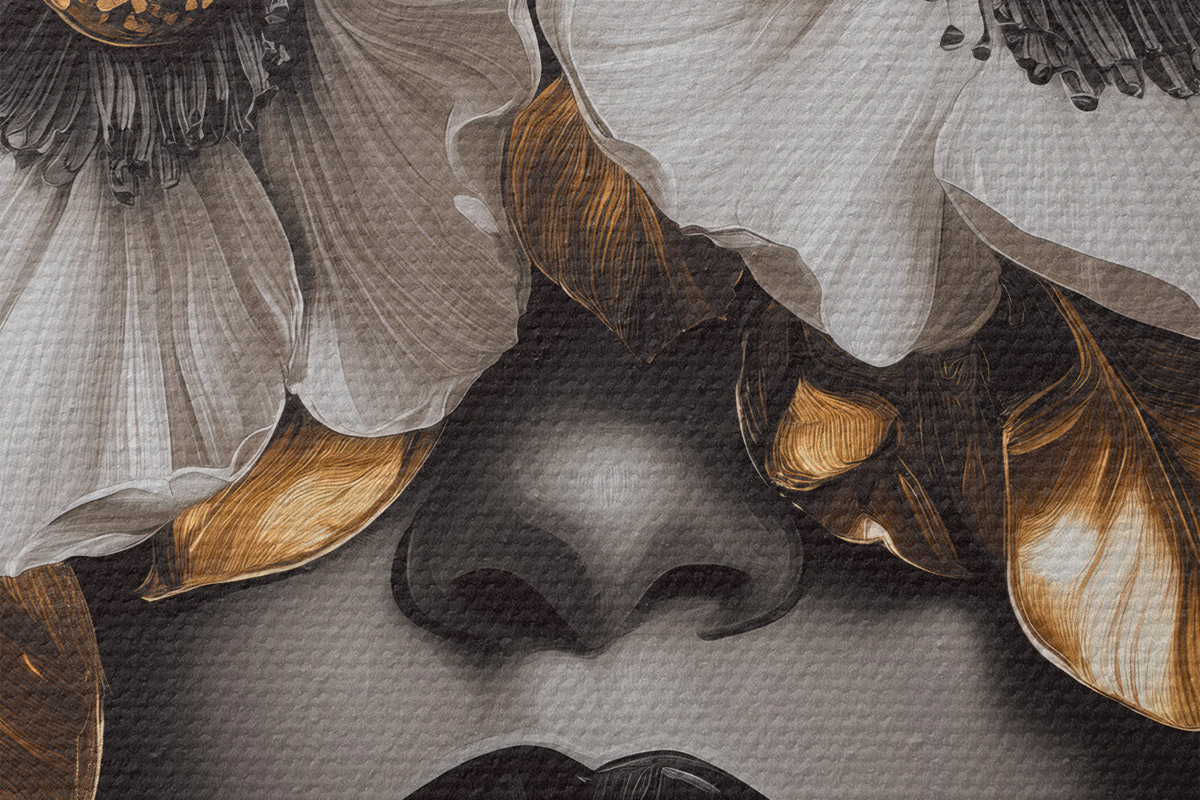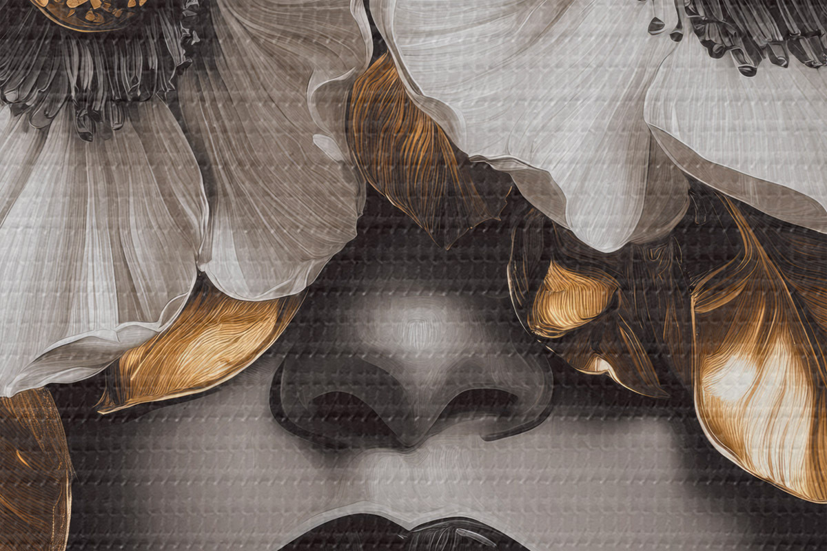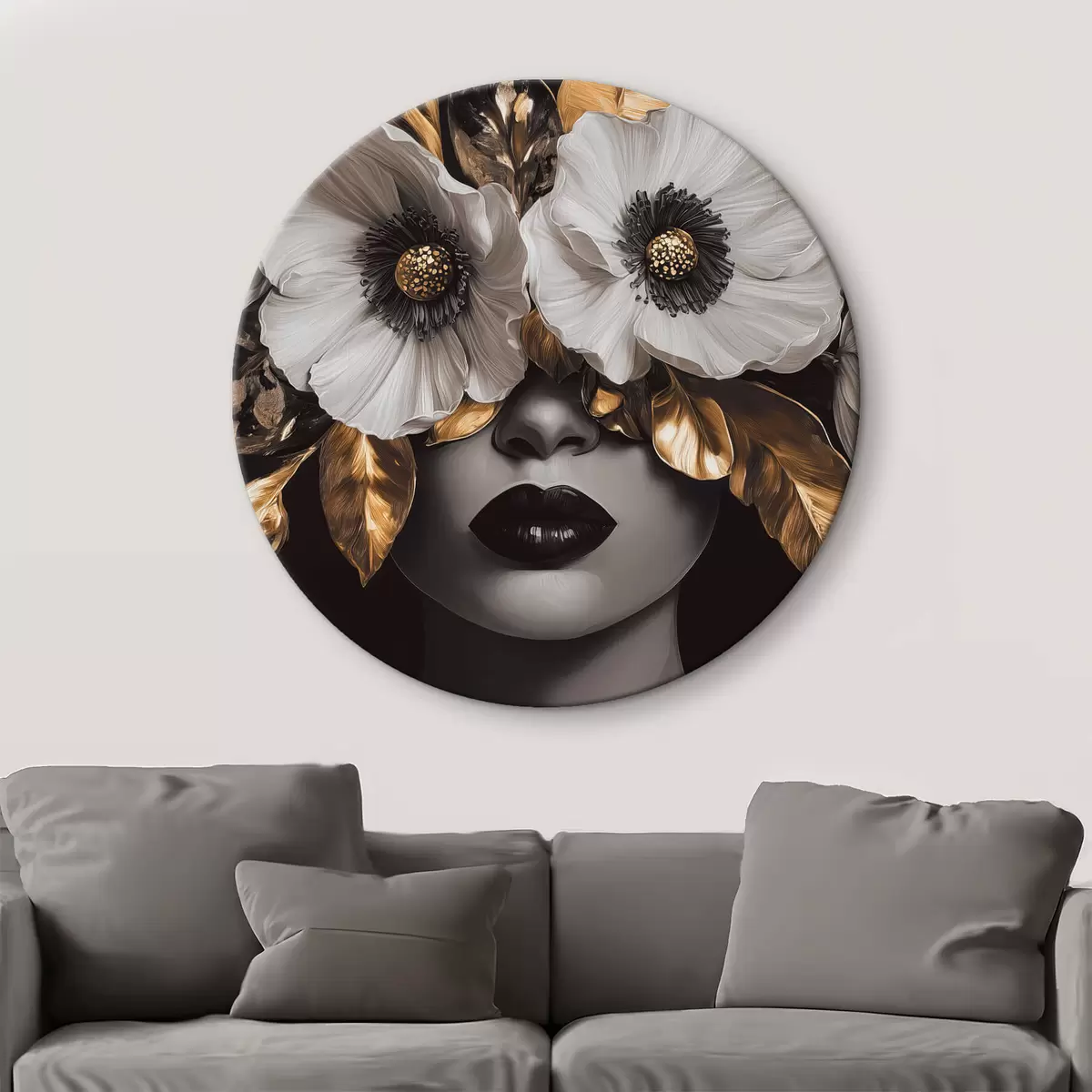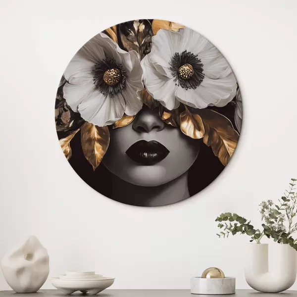Picturi rotunde Portret semi-abstract al unei femei cu flori r44365