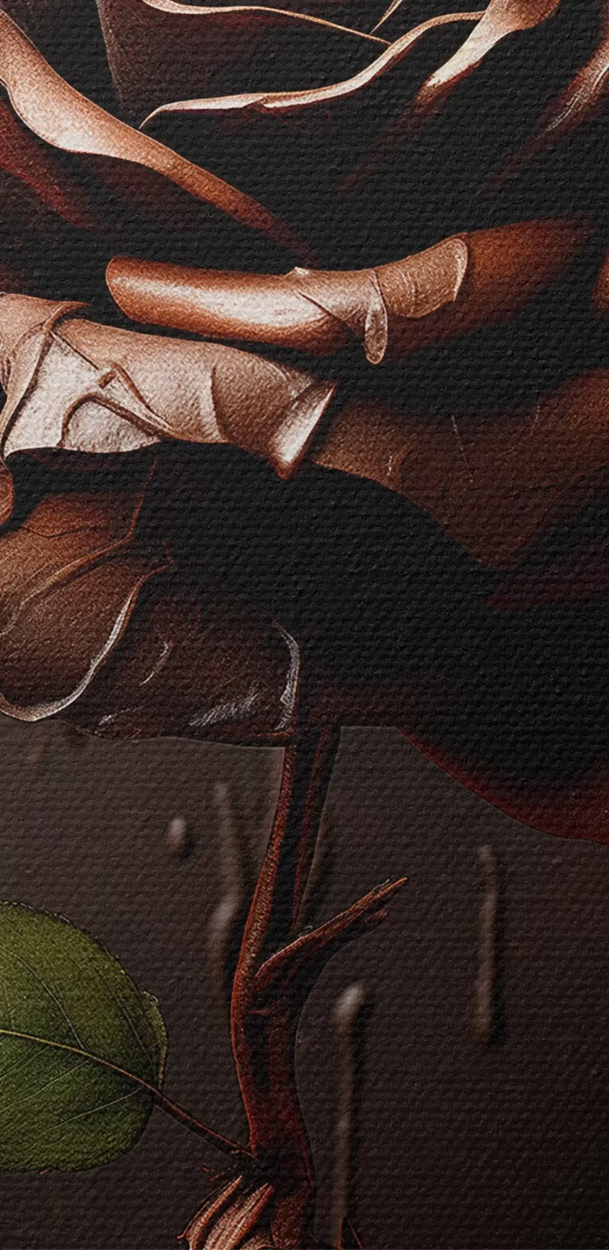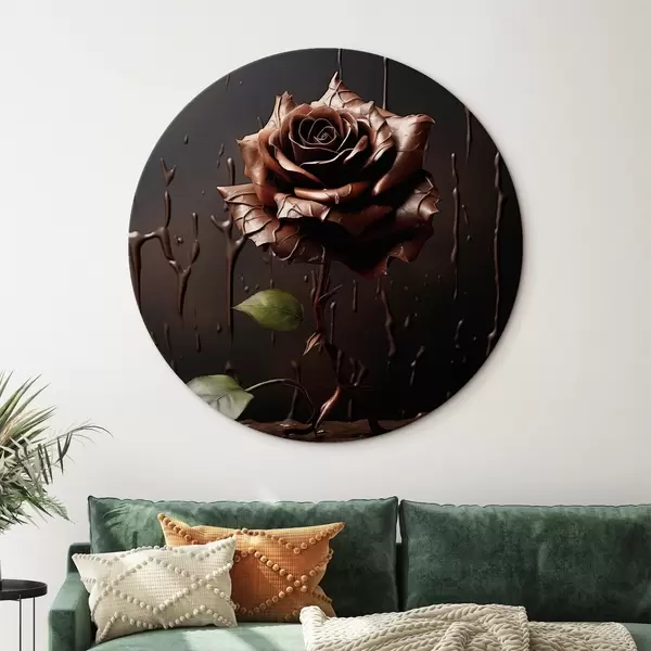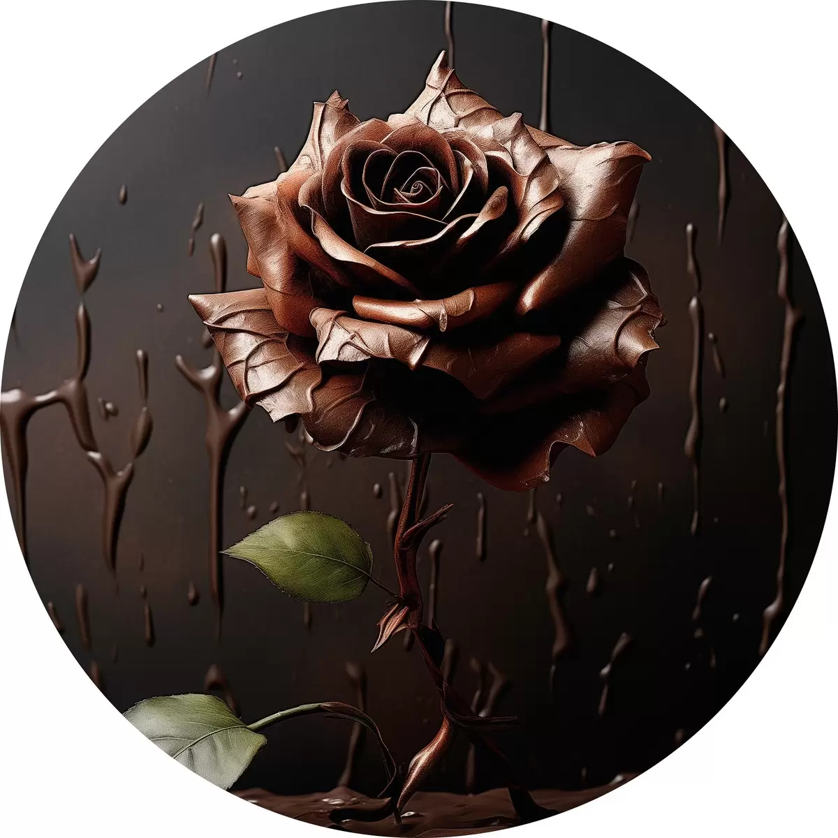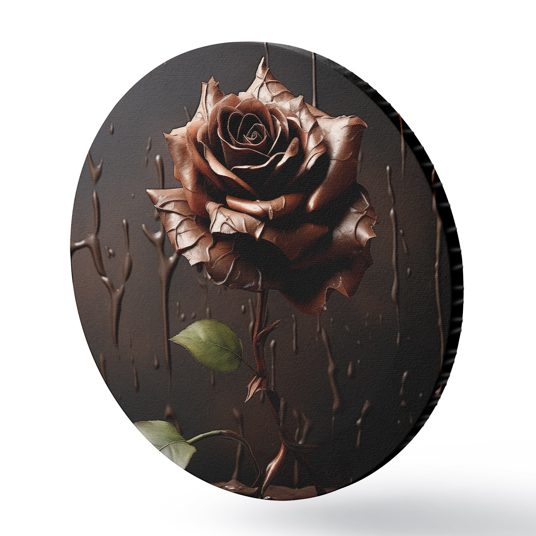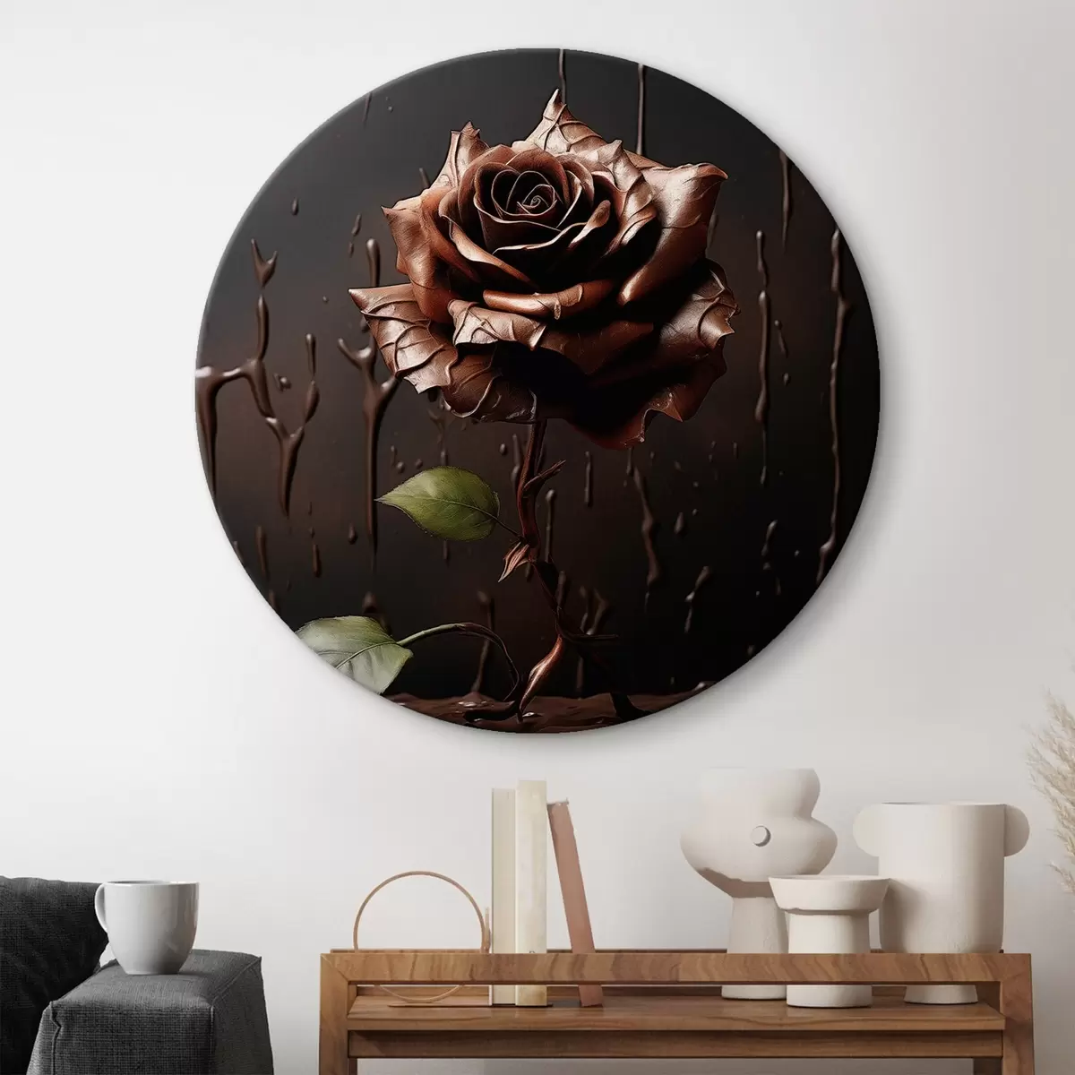 Picturi rotunde Trandafir maro pe un fundal închis cu stropi de ciocolată Nr r44381