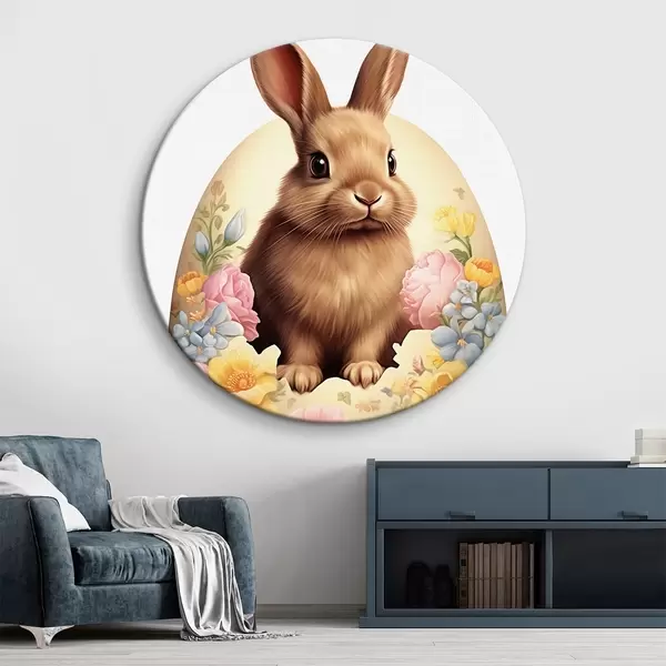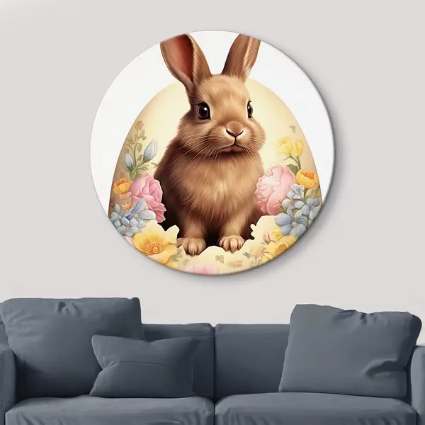 Picturi rotunde Iepure în flori de acuarelă Nr r44383