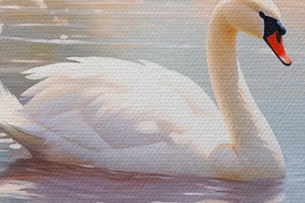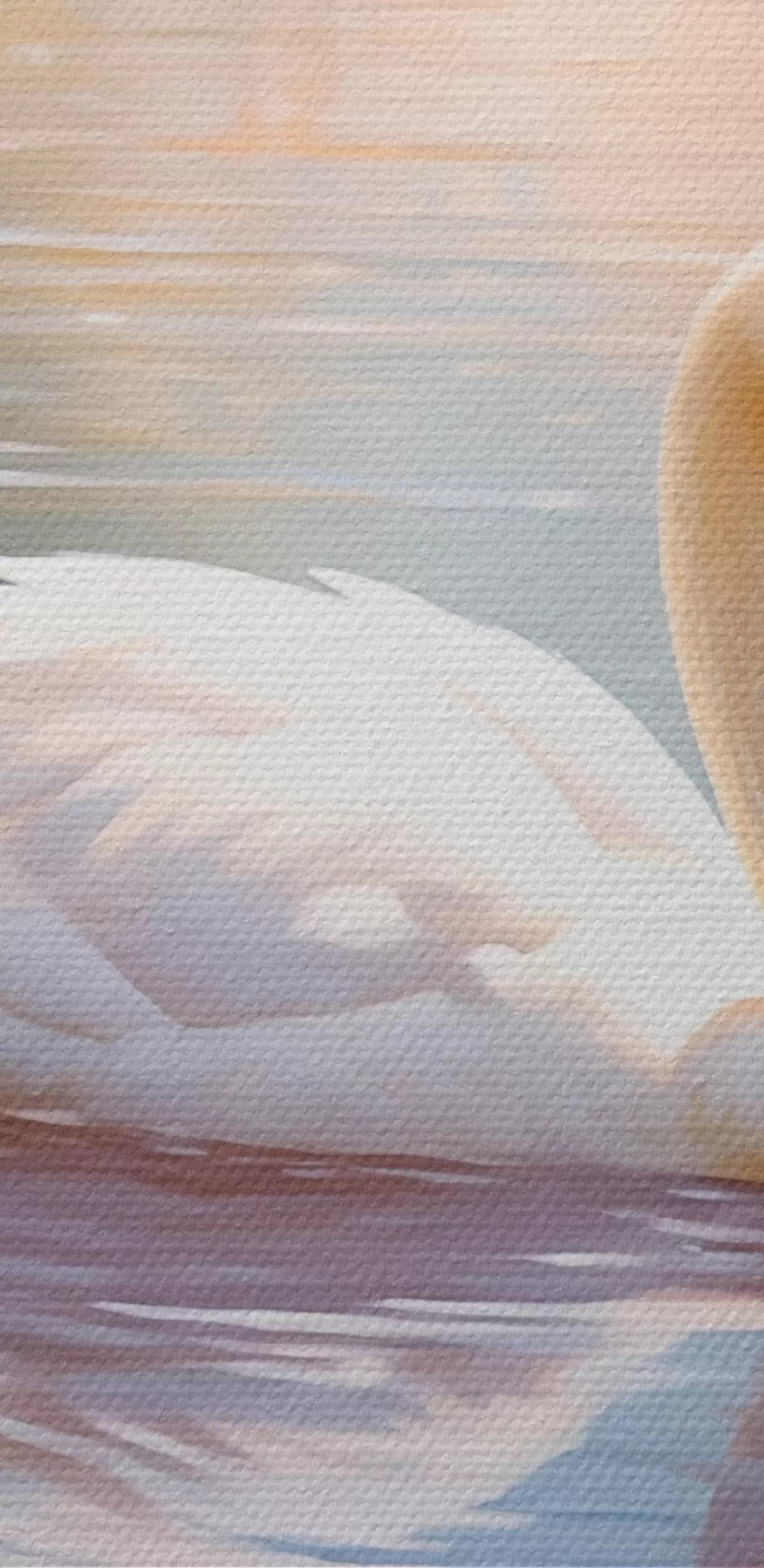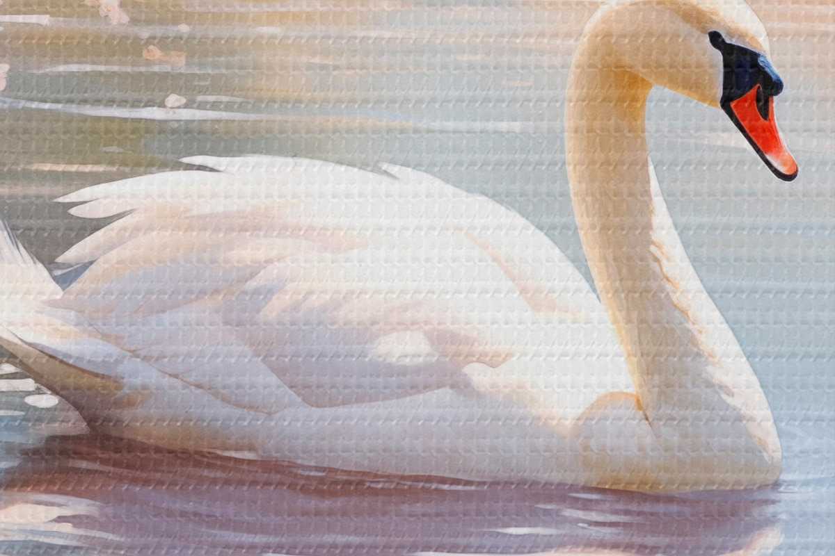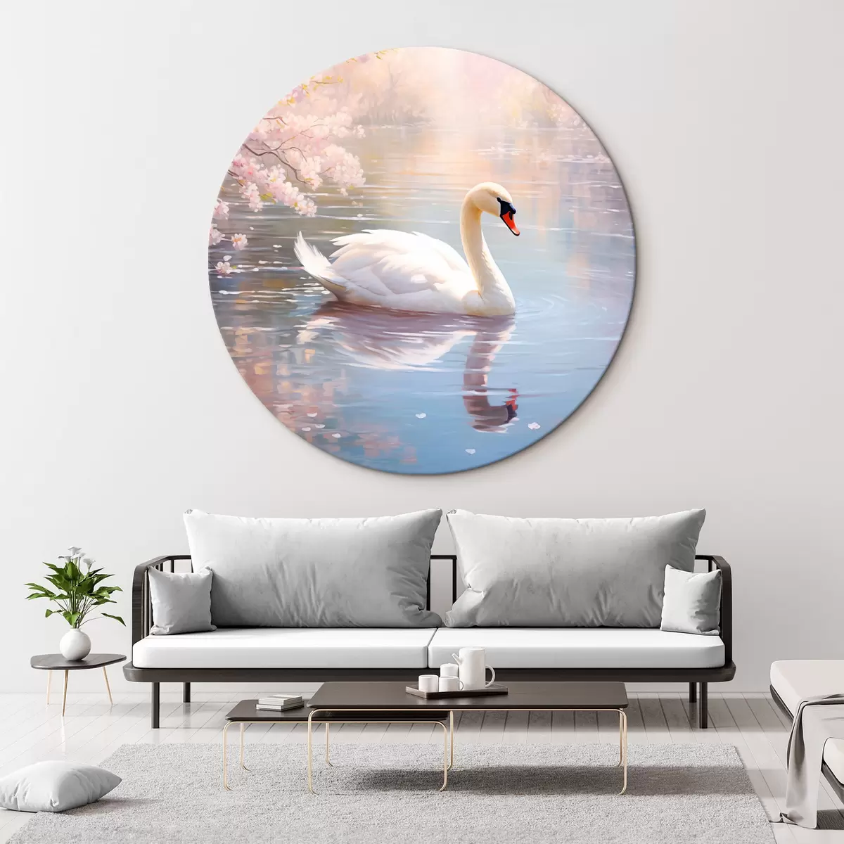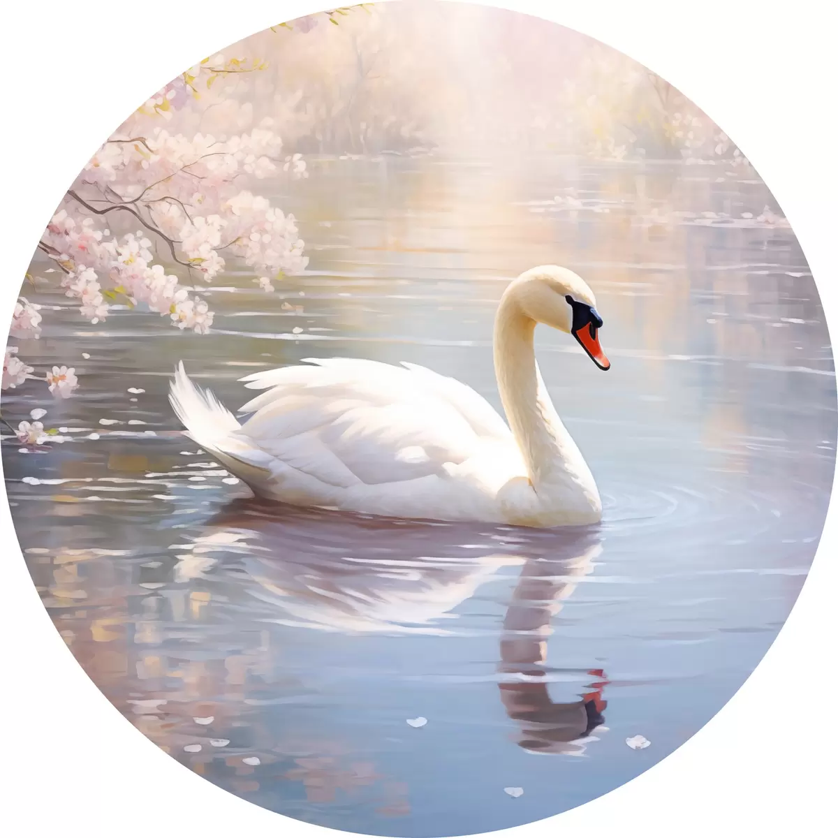 Picturi rotunde O lebădă albă înotând într-un lac cu cireși înfloriți, culori pastelate Nr r44396