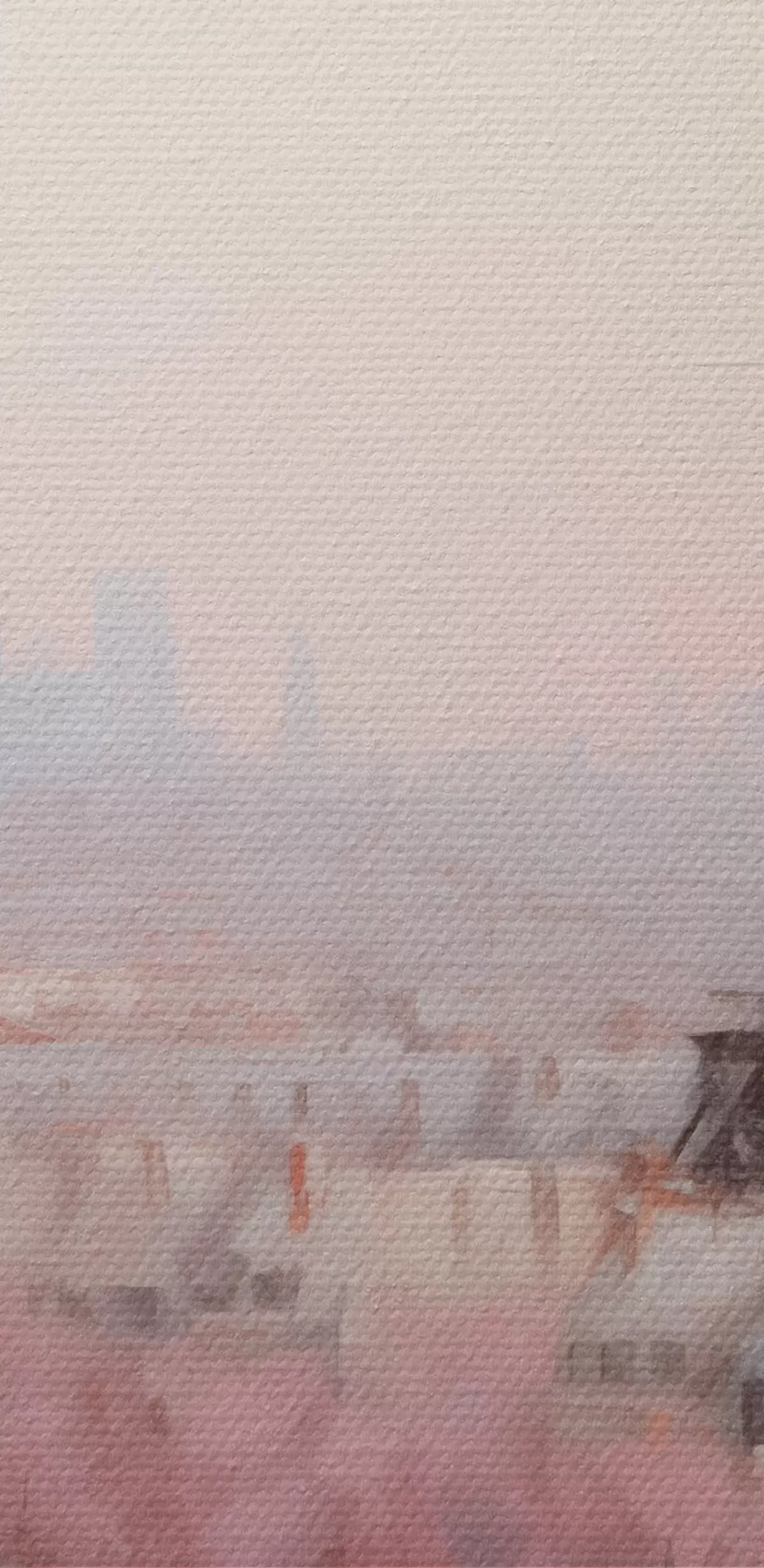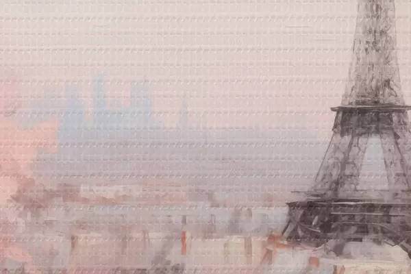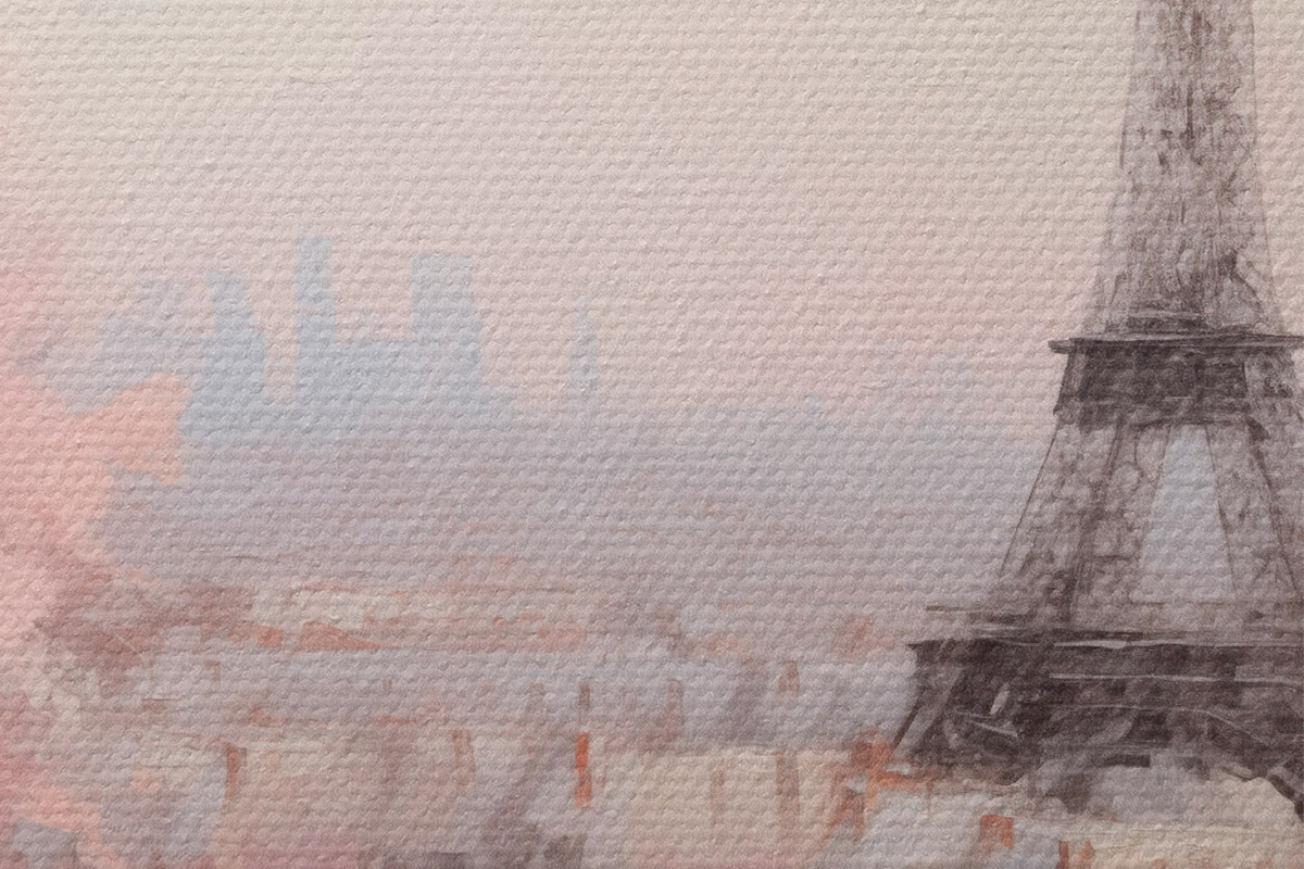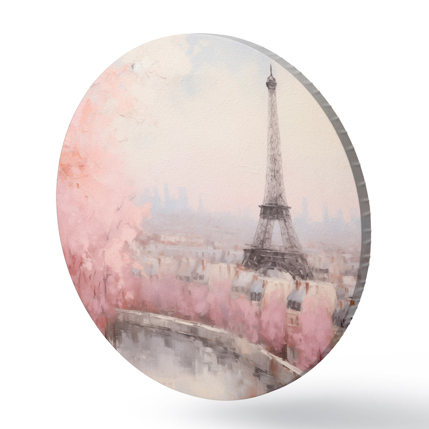 Picturi rotunde Turnul Eiffel din Paris cu cireși înfloriți primăvara, culori pastelate moi r44398