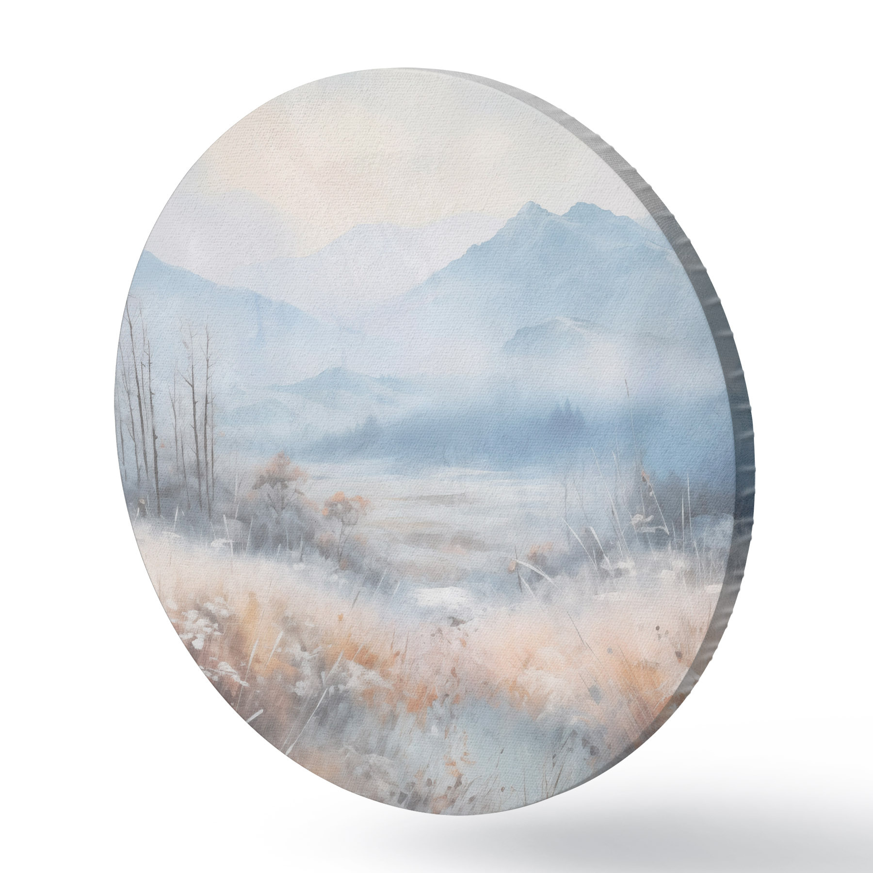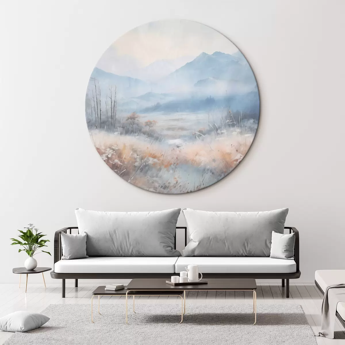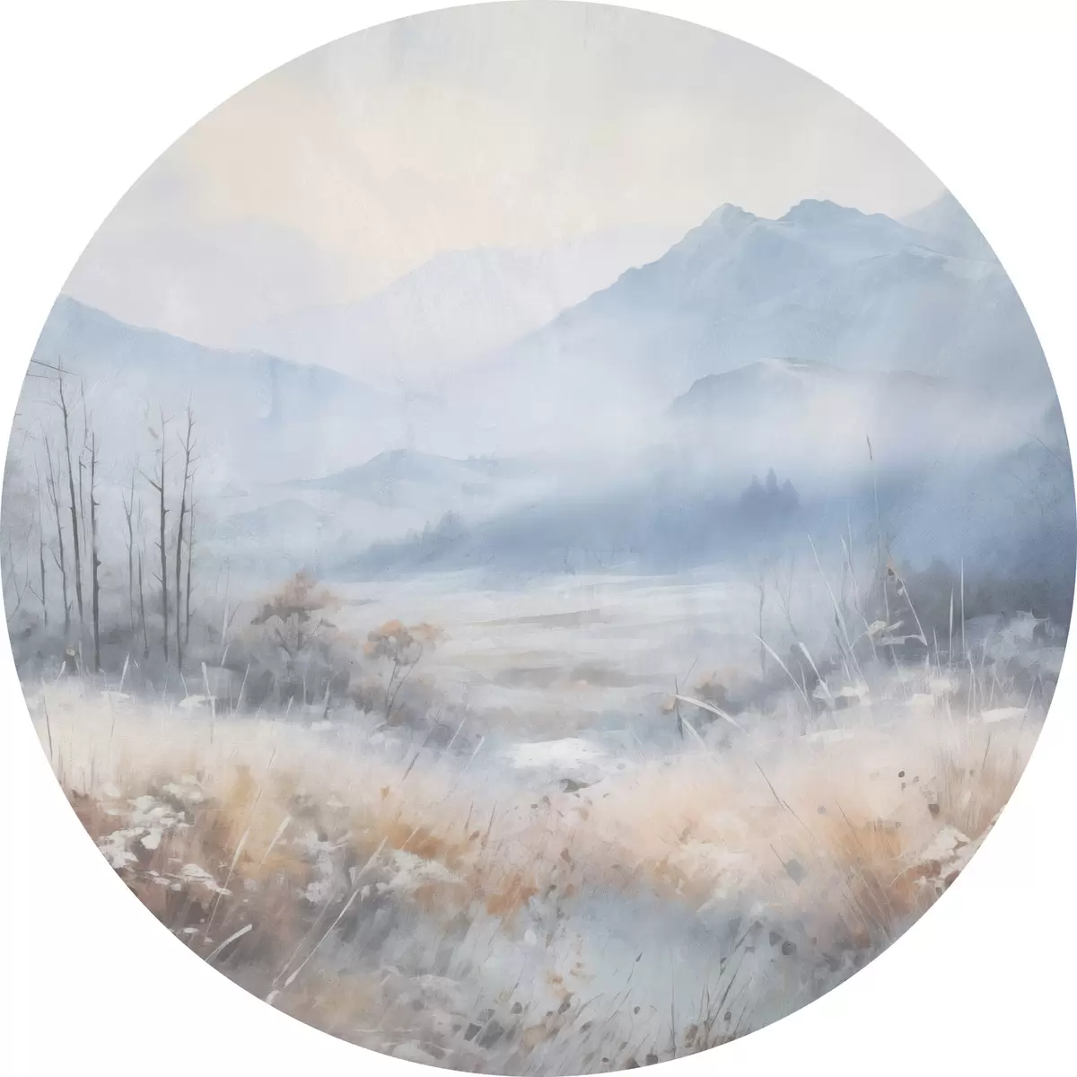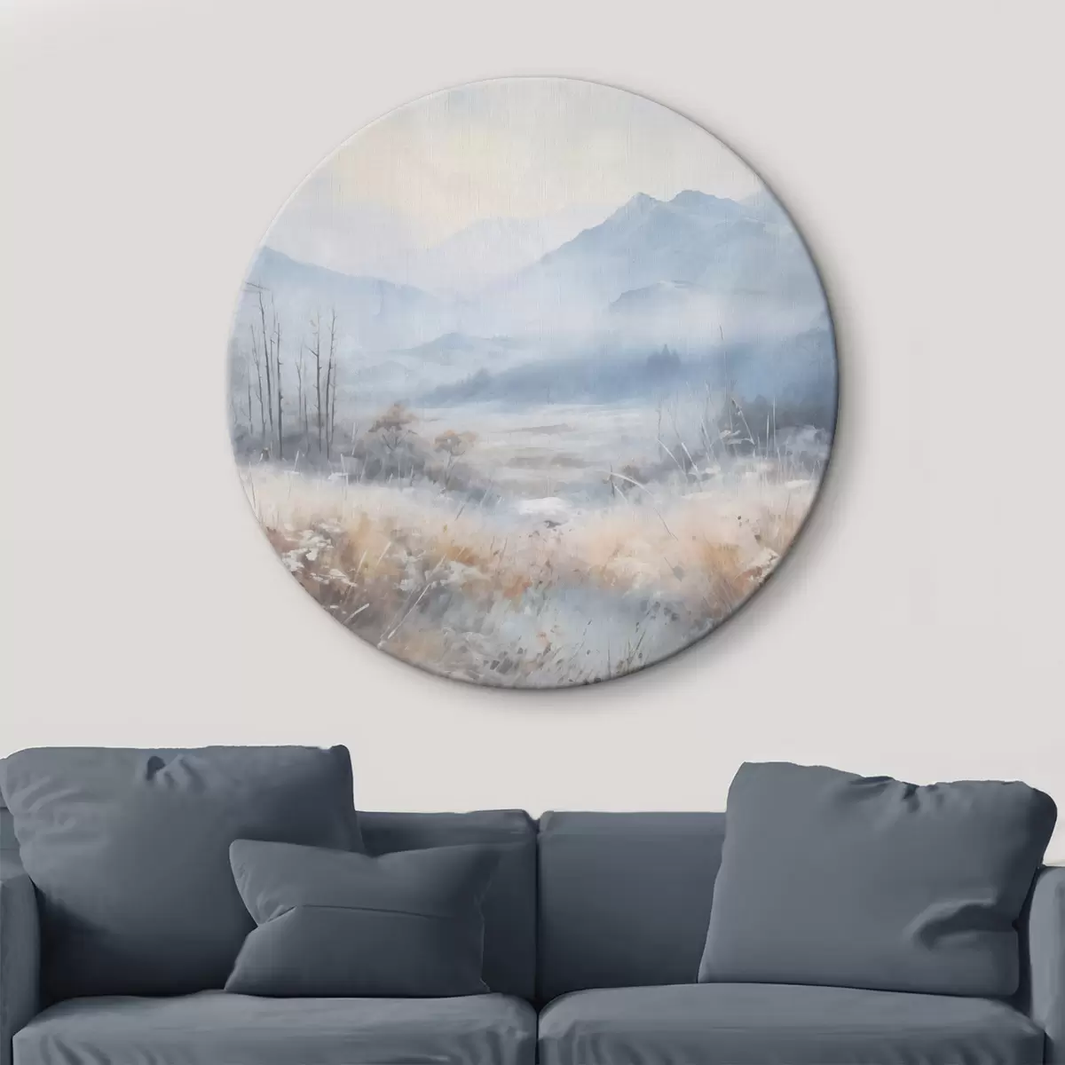 Picturi rotunde Peisaj texturat cu munți, iarbă uscată și o pădure, culori stinse Nr r44402