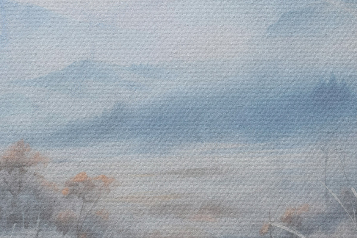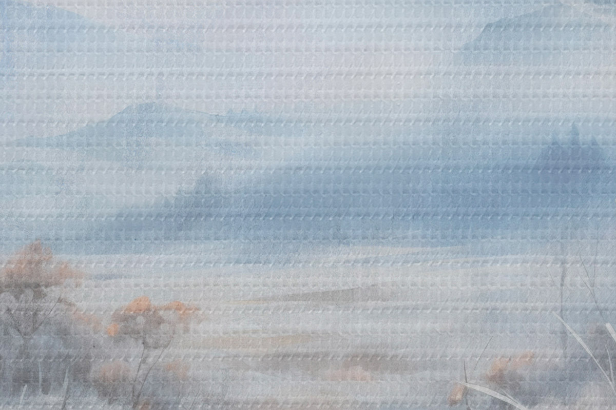 Picturi rotunde Peisaj texturat cu munți, iarbă uscată și o pădure, culori stinse r44402