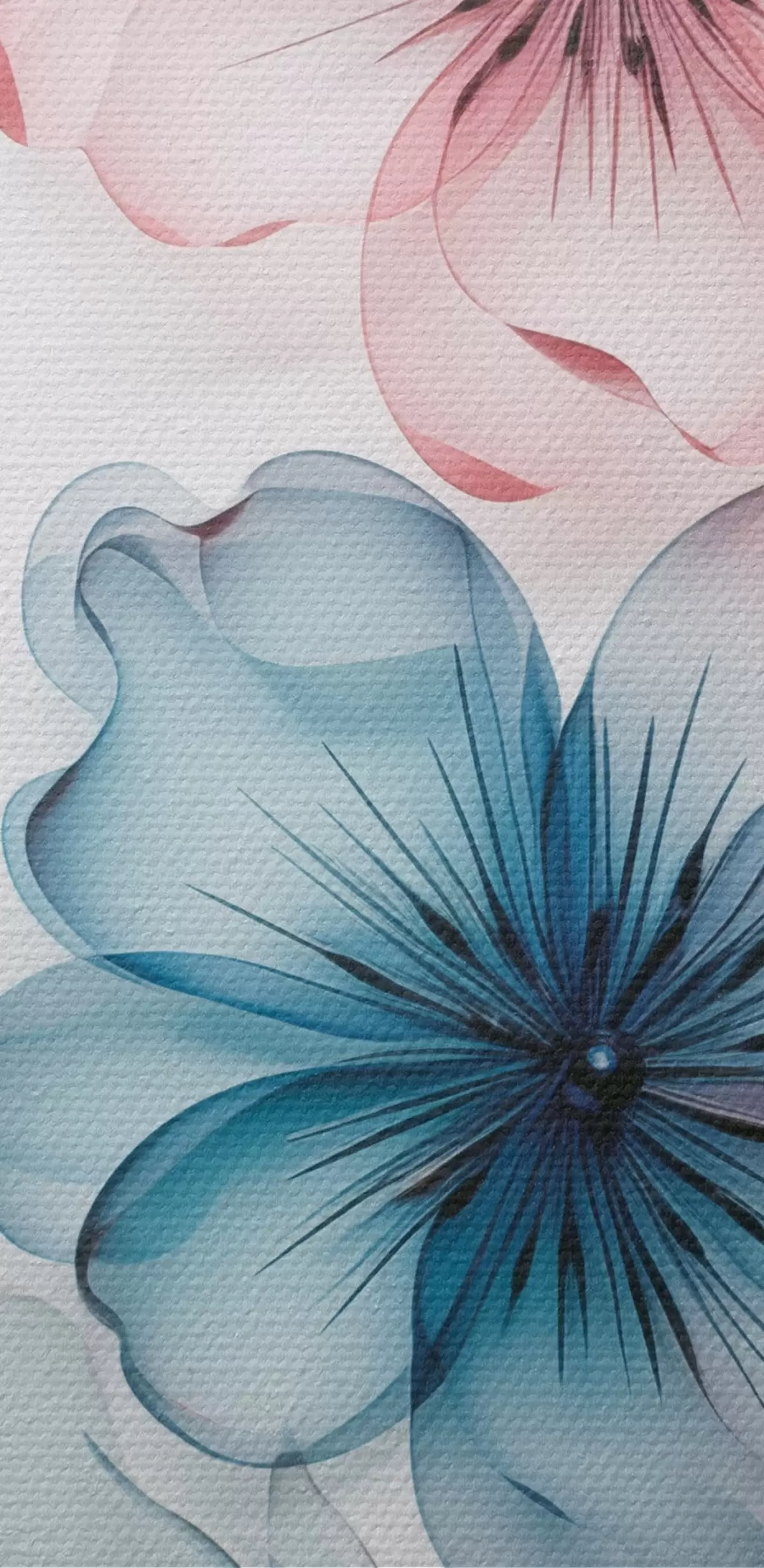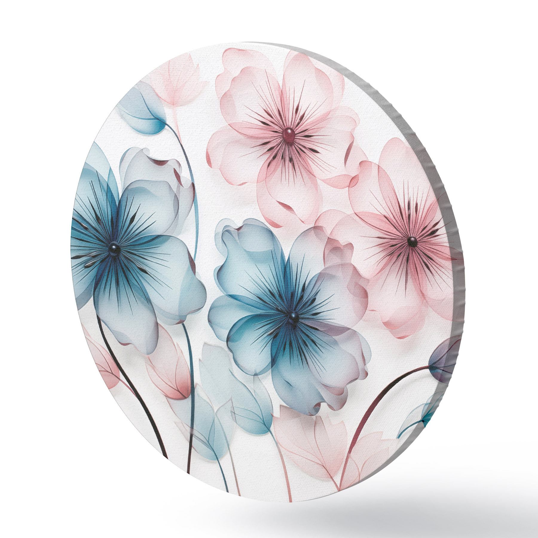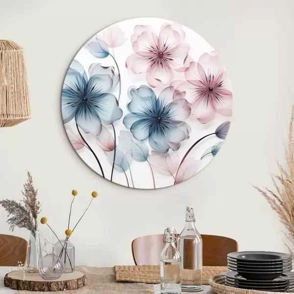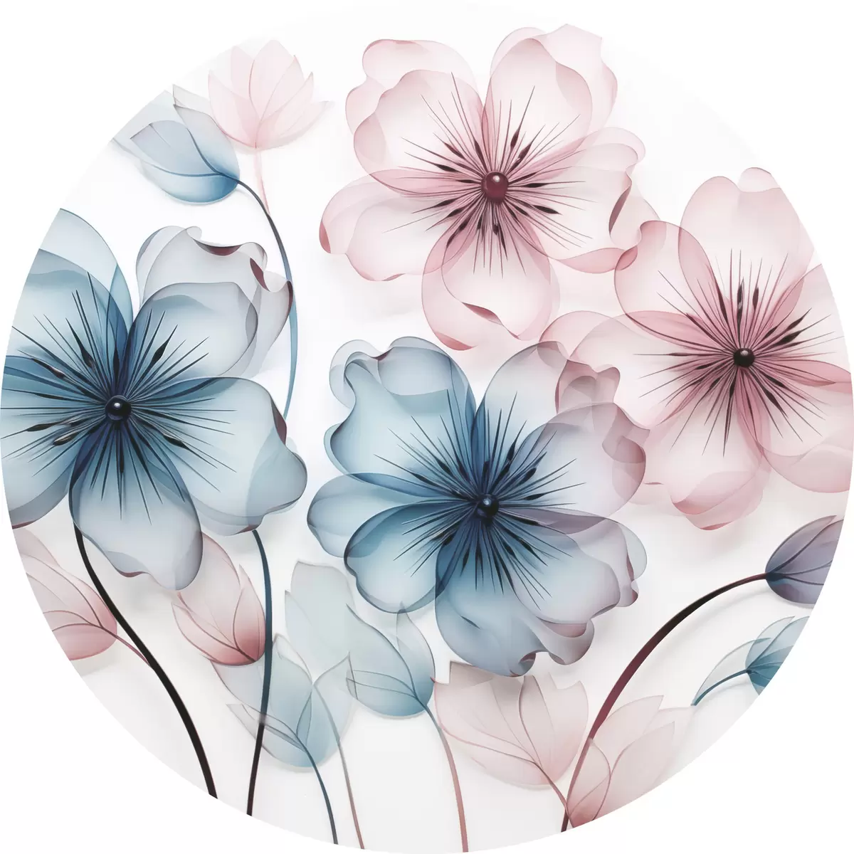 Picturi rotunde Flori translucide roz și albastru, cu stamine și tulpini vizibile Nr r44405