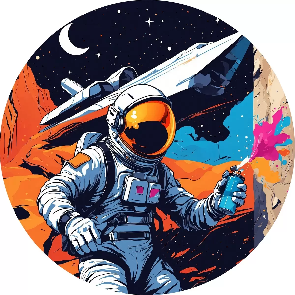 Picturi rotunde Poster cu astronaut și navă Nr r44434