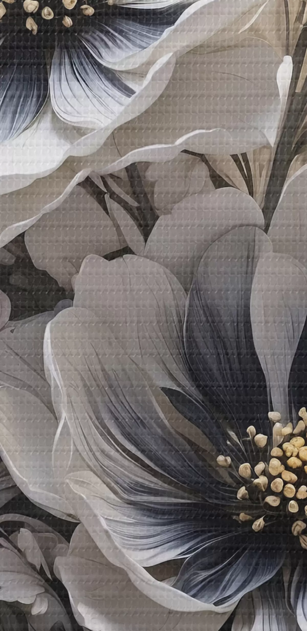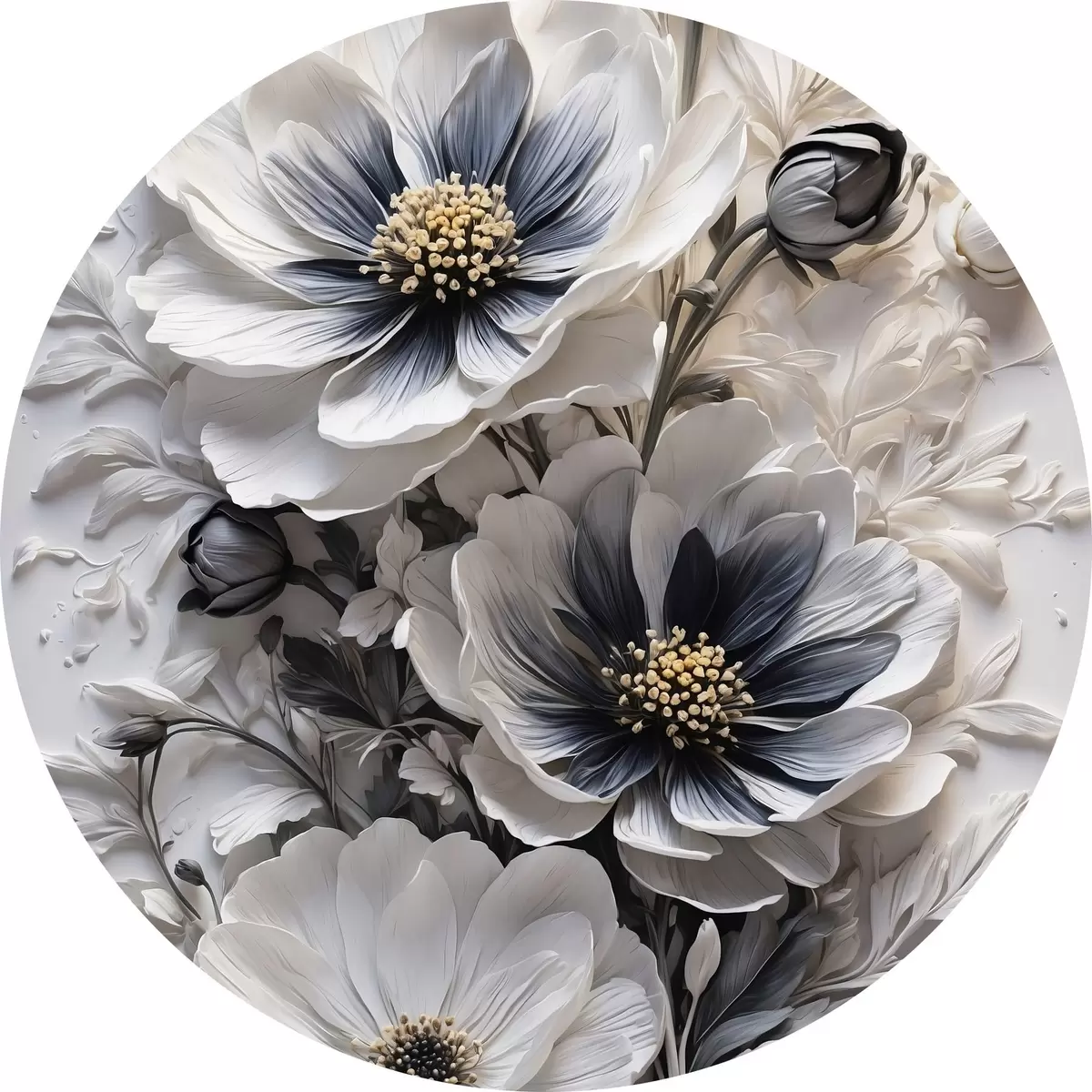 Picturi rotunde Flori albe și negre pe fundal alb Nr r44446