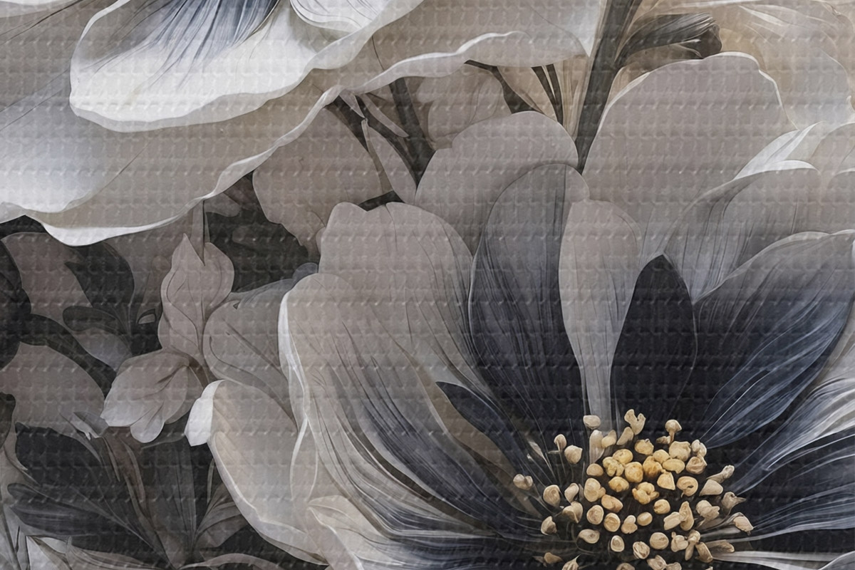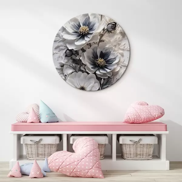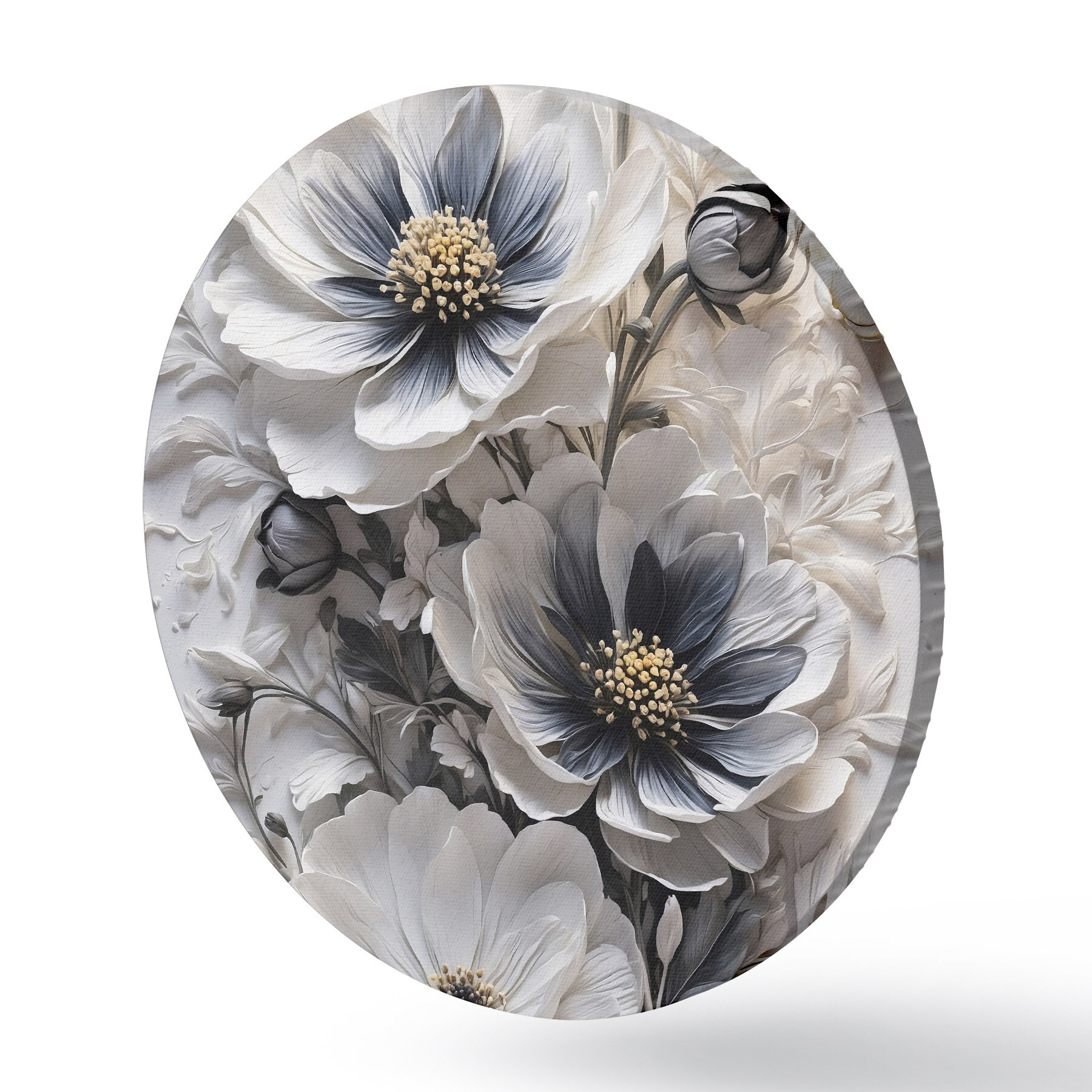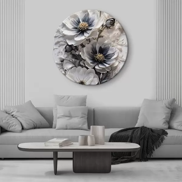 Picturi rotunde Flori albe și negre pe fundal alb r44446