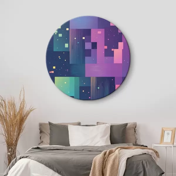 Picturi rotunde Pictură abstractă cu figuri dreptunghiulare multicolore r44457