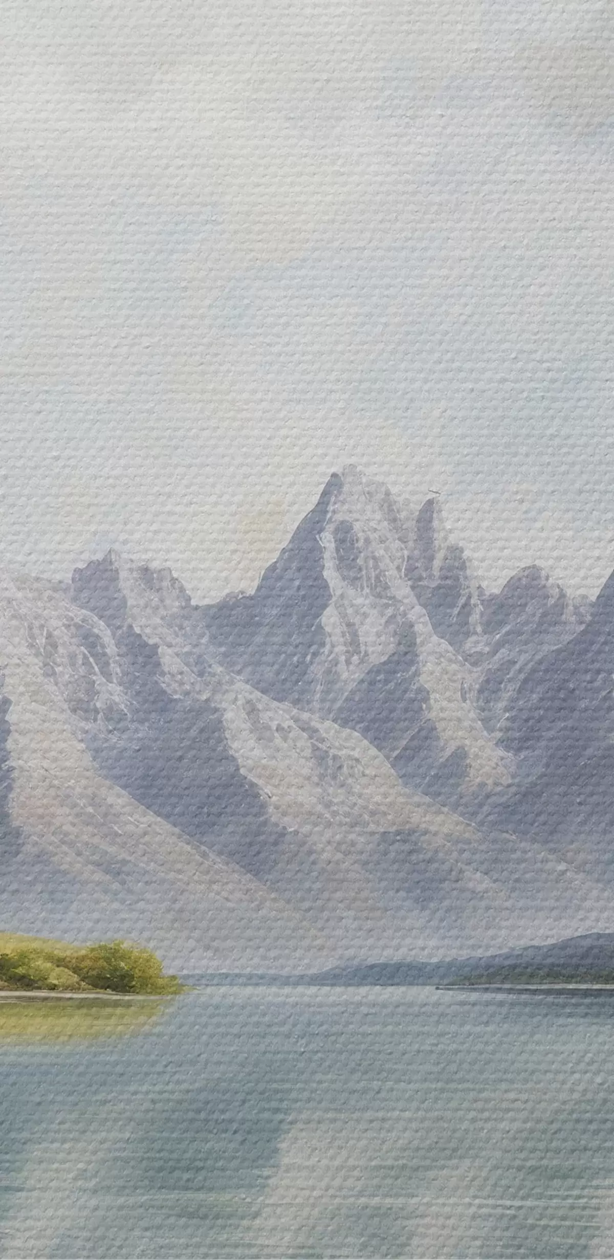Picturi rotunde Vedere pe lac și munți înzăpeziți în cadru r44458
