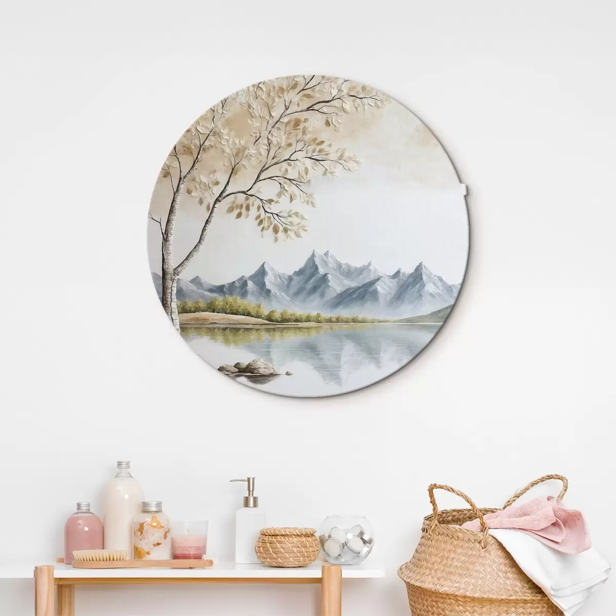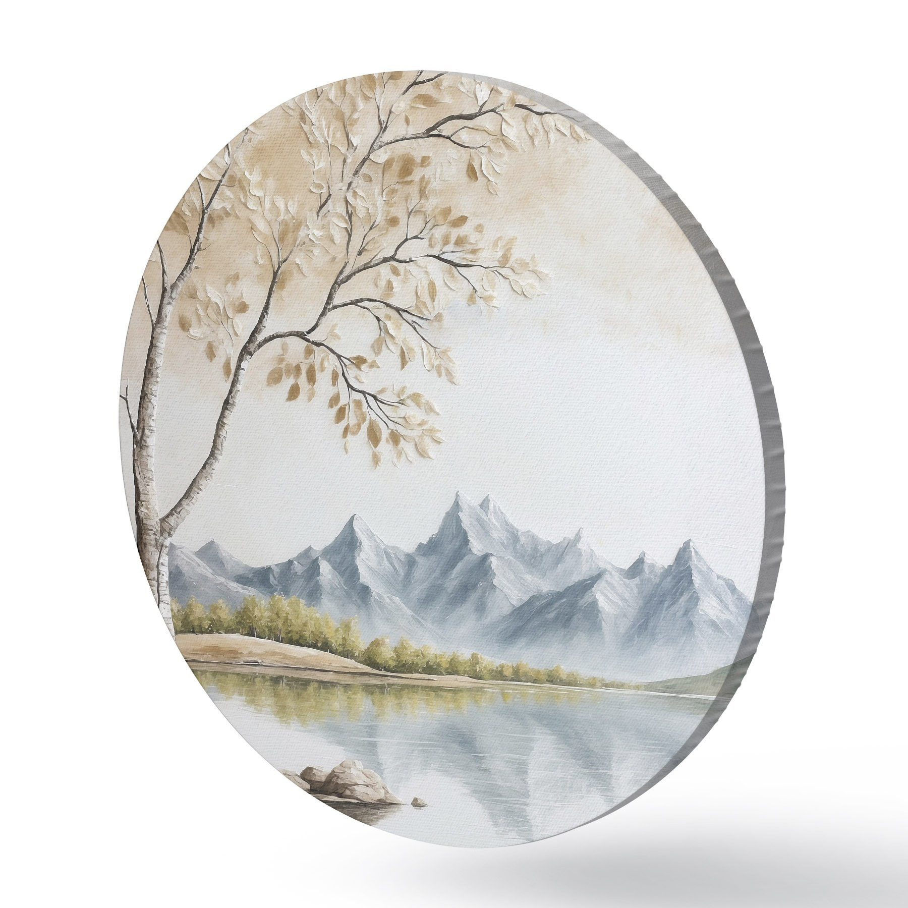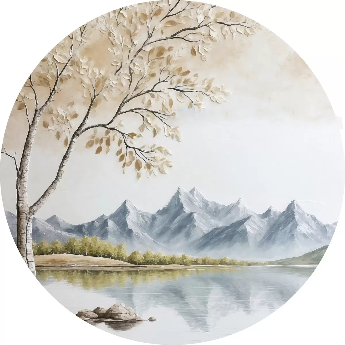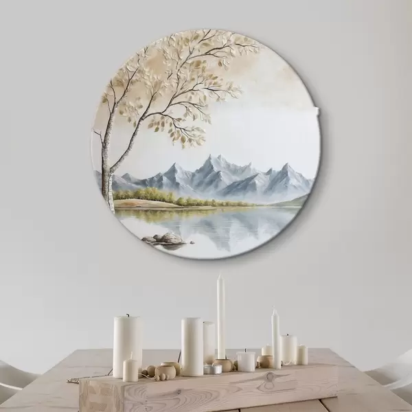 Picturi rotunde Copac pe fundal lac și munți înzăpeziți r44459