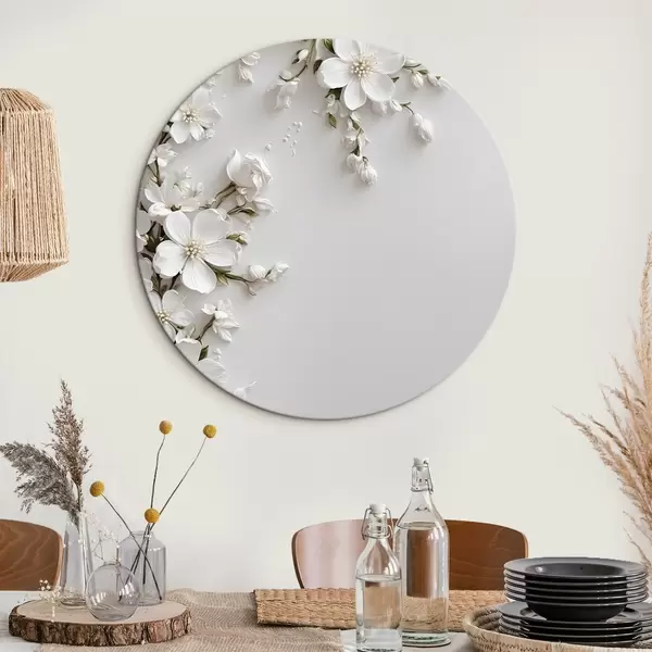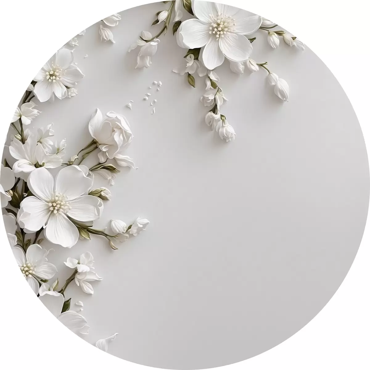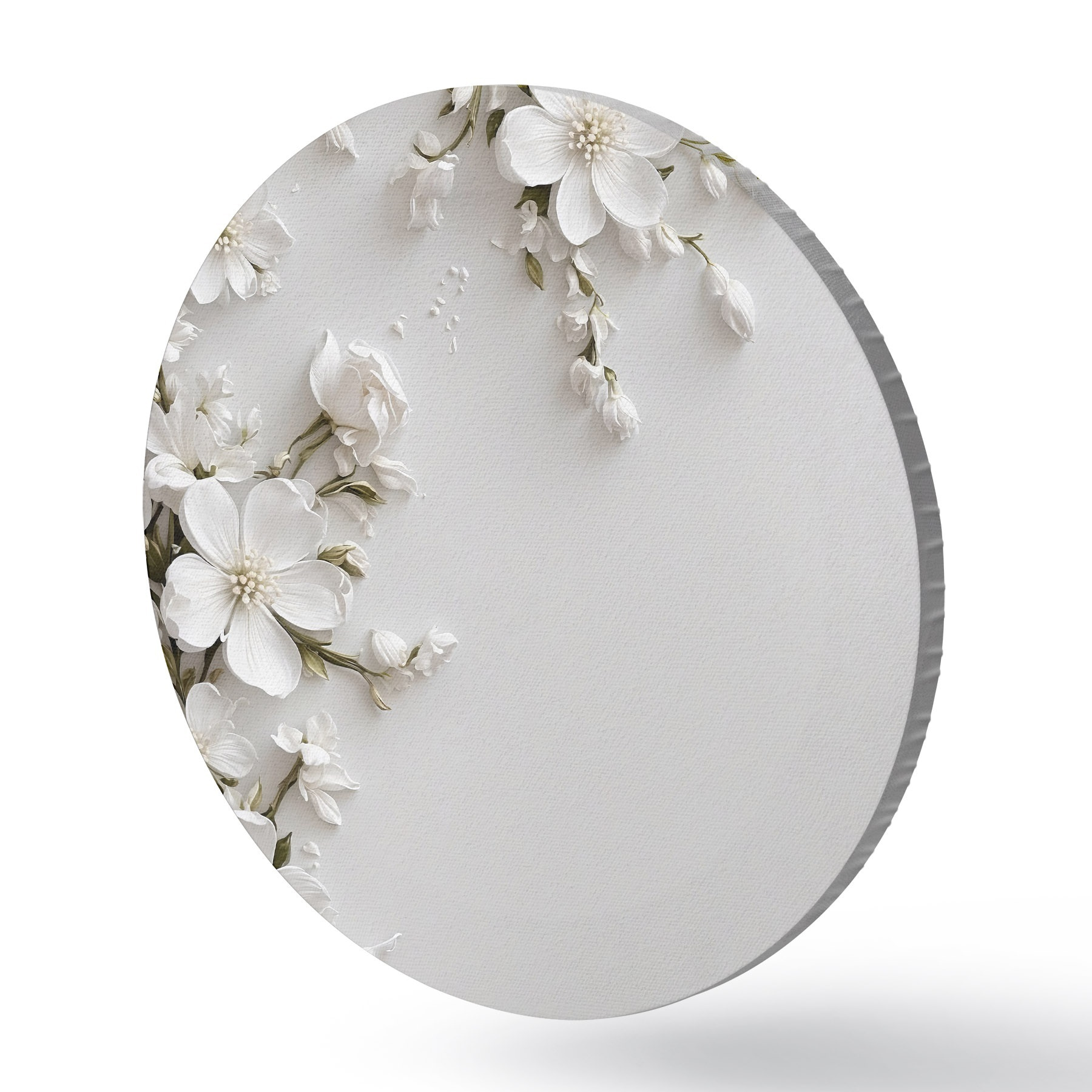 Picturi rotunde Flori albe pe fundal alb de perete Nr r44466