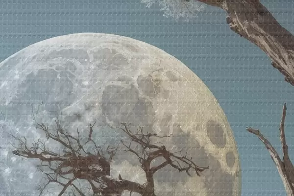 Picturi rotunde Copac în creștere în mijlocul unui lac pe fundal luna r44481
