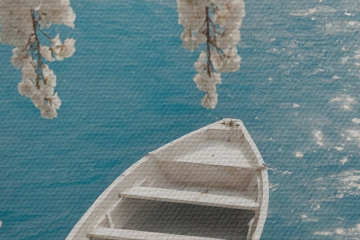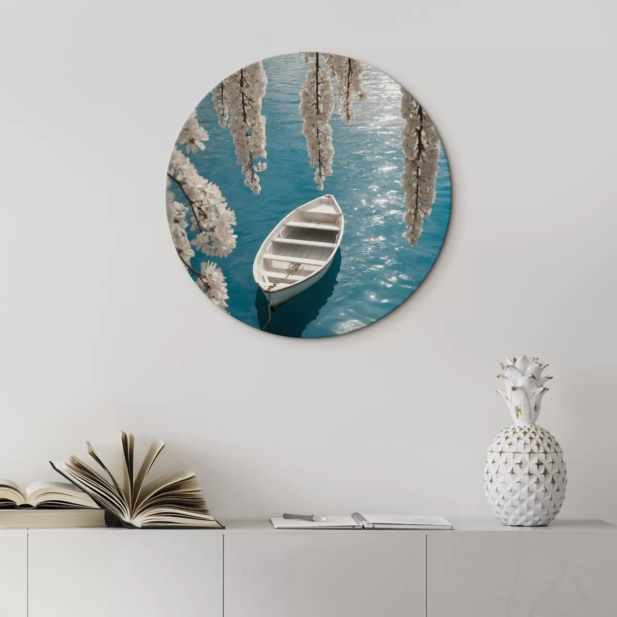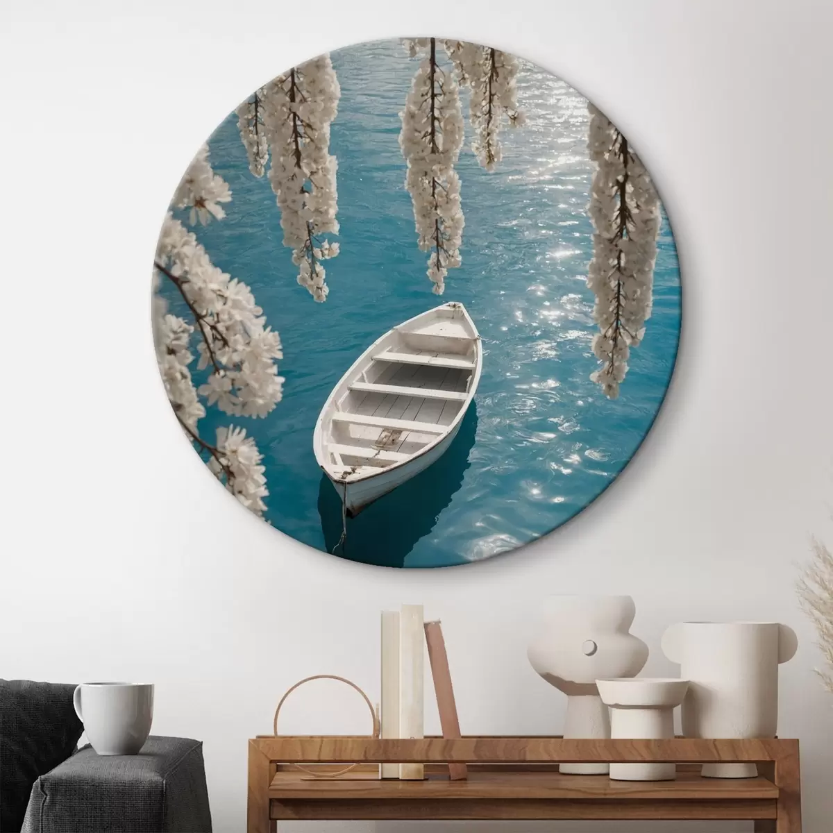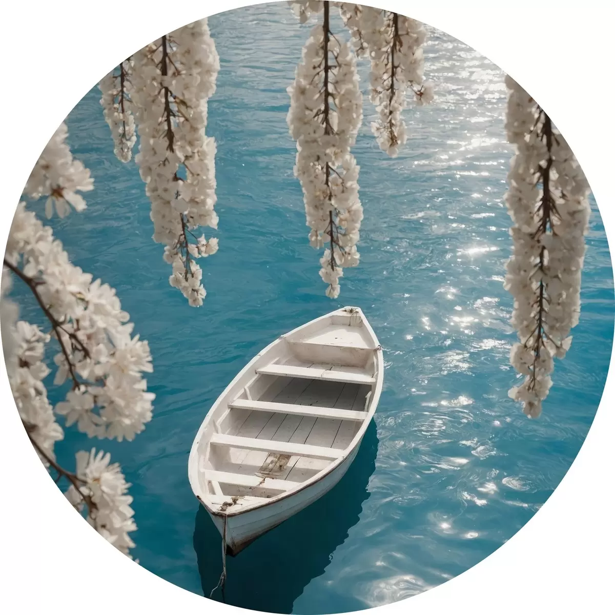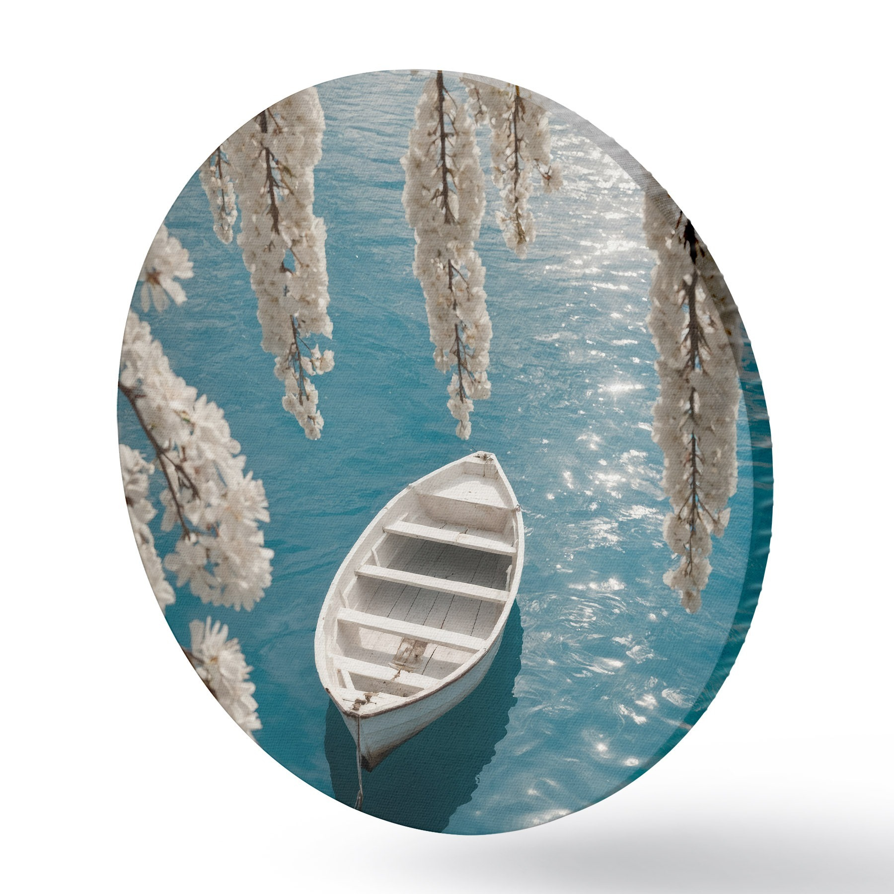 Picturi rotunde Barcă albă sub un copac Nr r44482