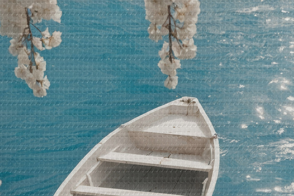 Picturi rotunde Barcă albă sub un copac r44482