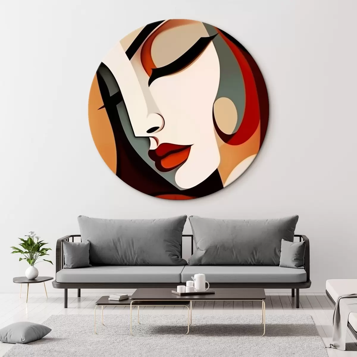 Picturi rotunde Profil feminin în stil cubist r44486