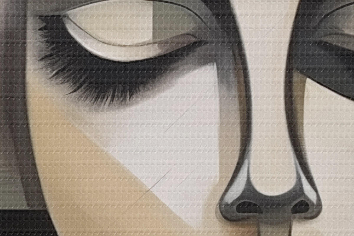 Pentru a întinde pânza pe barele de întins fără a deteriora imaginea, folosim o imagine în oglindă.