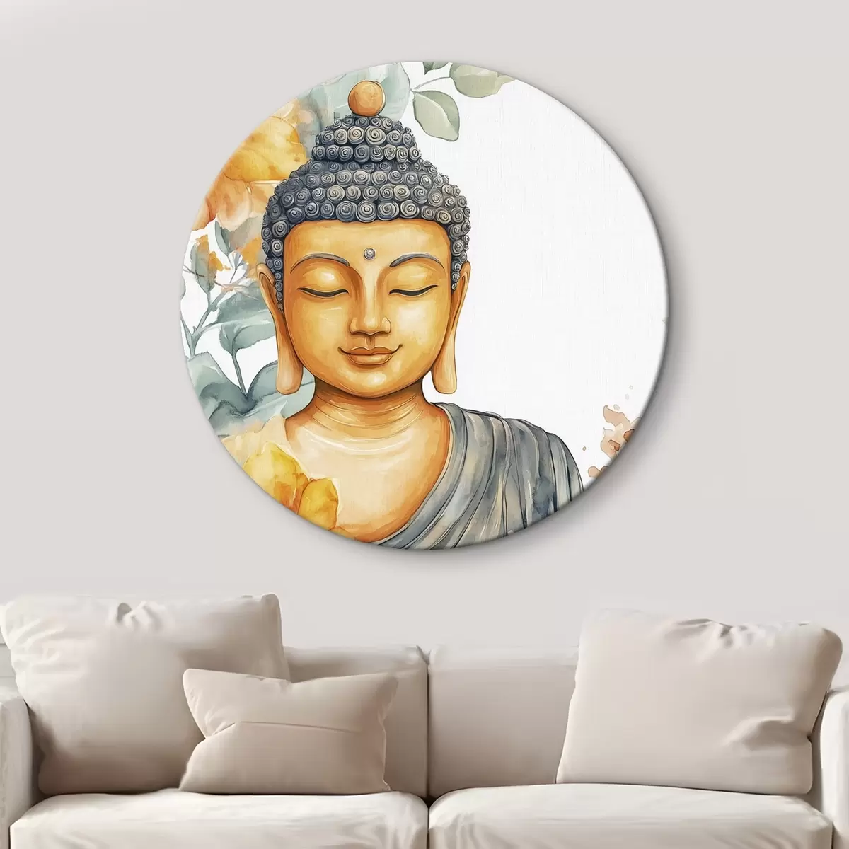 Picturi rotunde Buddha înconjurat de flori portocalii, stil acuarelă Nr r44508