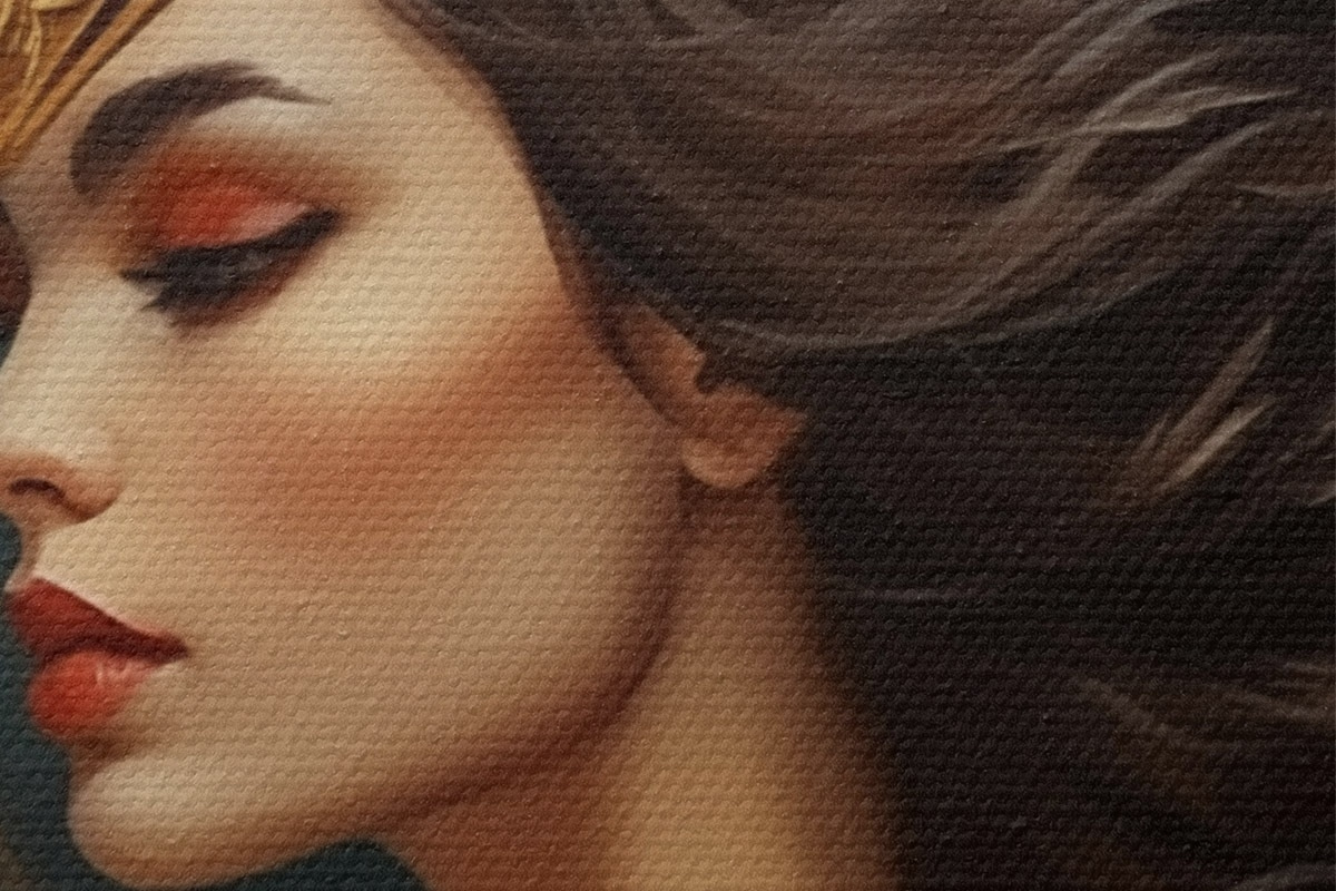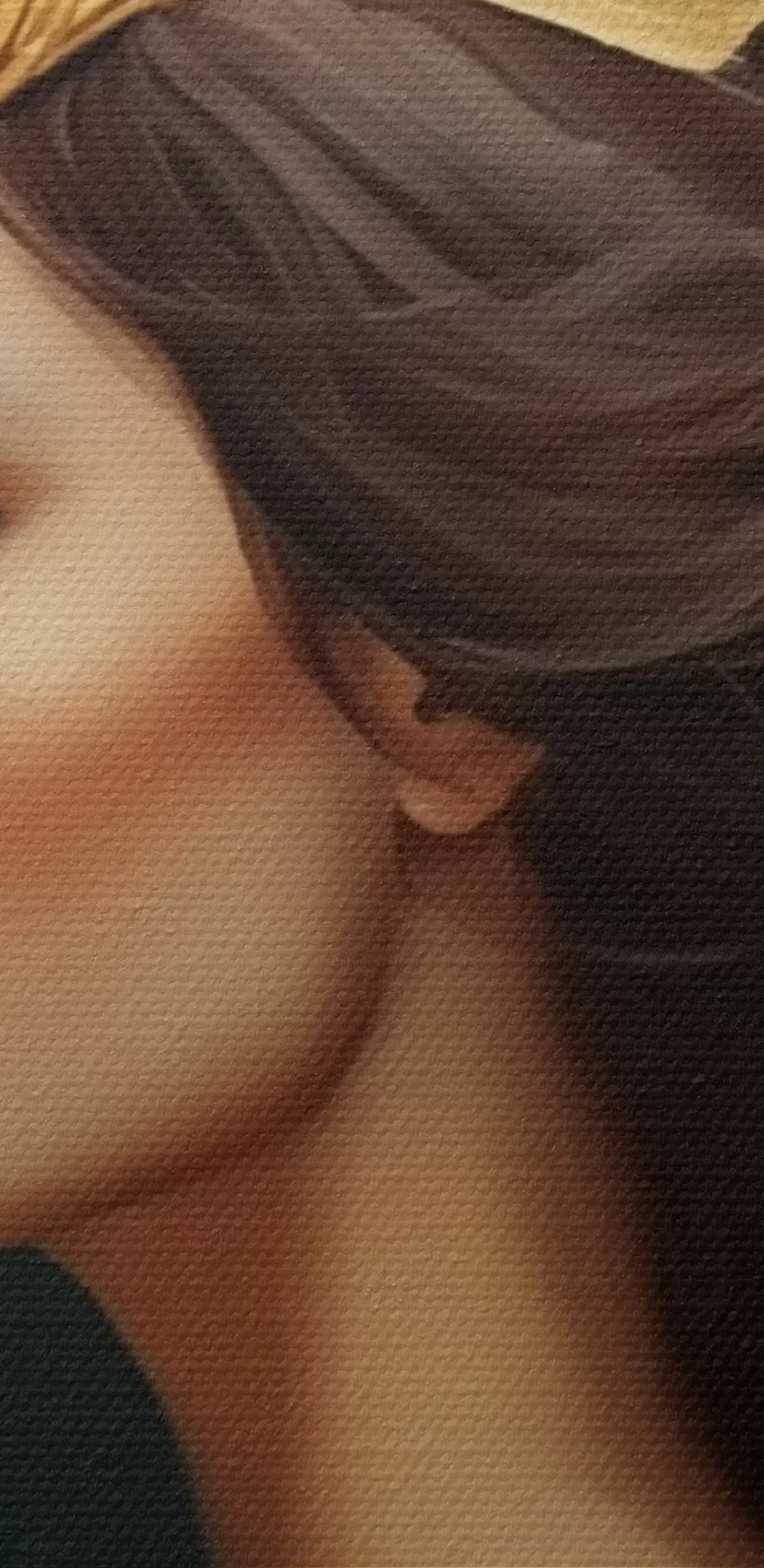 Țesătura fină a firelor de pe această pânză seamănă cu suprafața pânzelor artiștilor profesioniști.