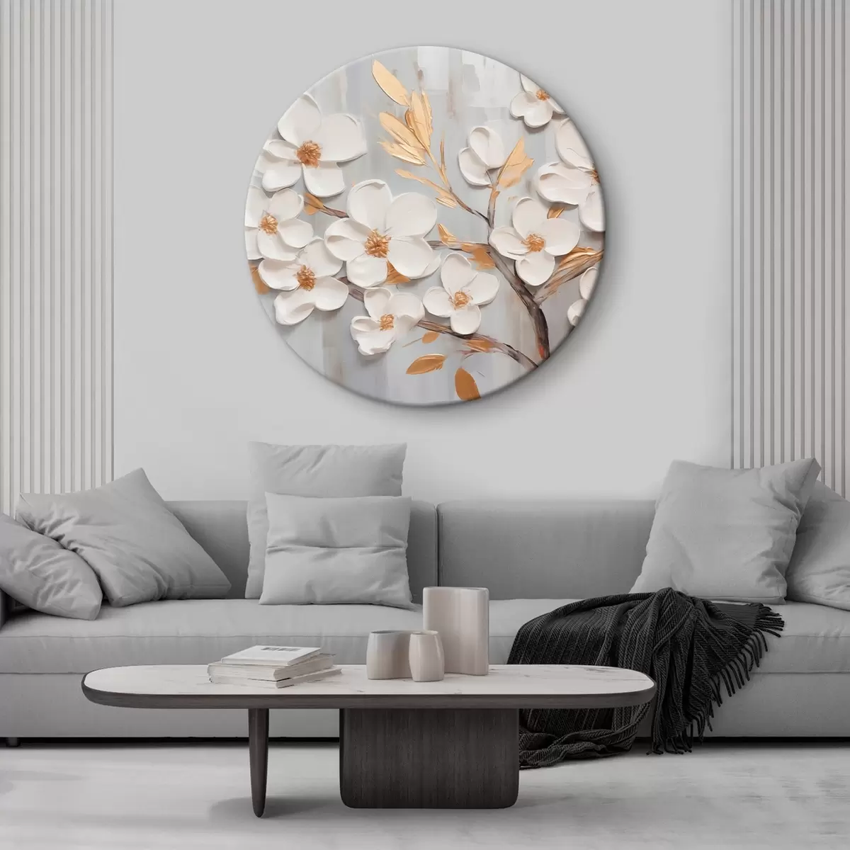 Picturi rotunde Pictura imitație flori albe Nr r44586