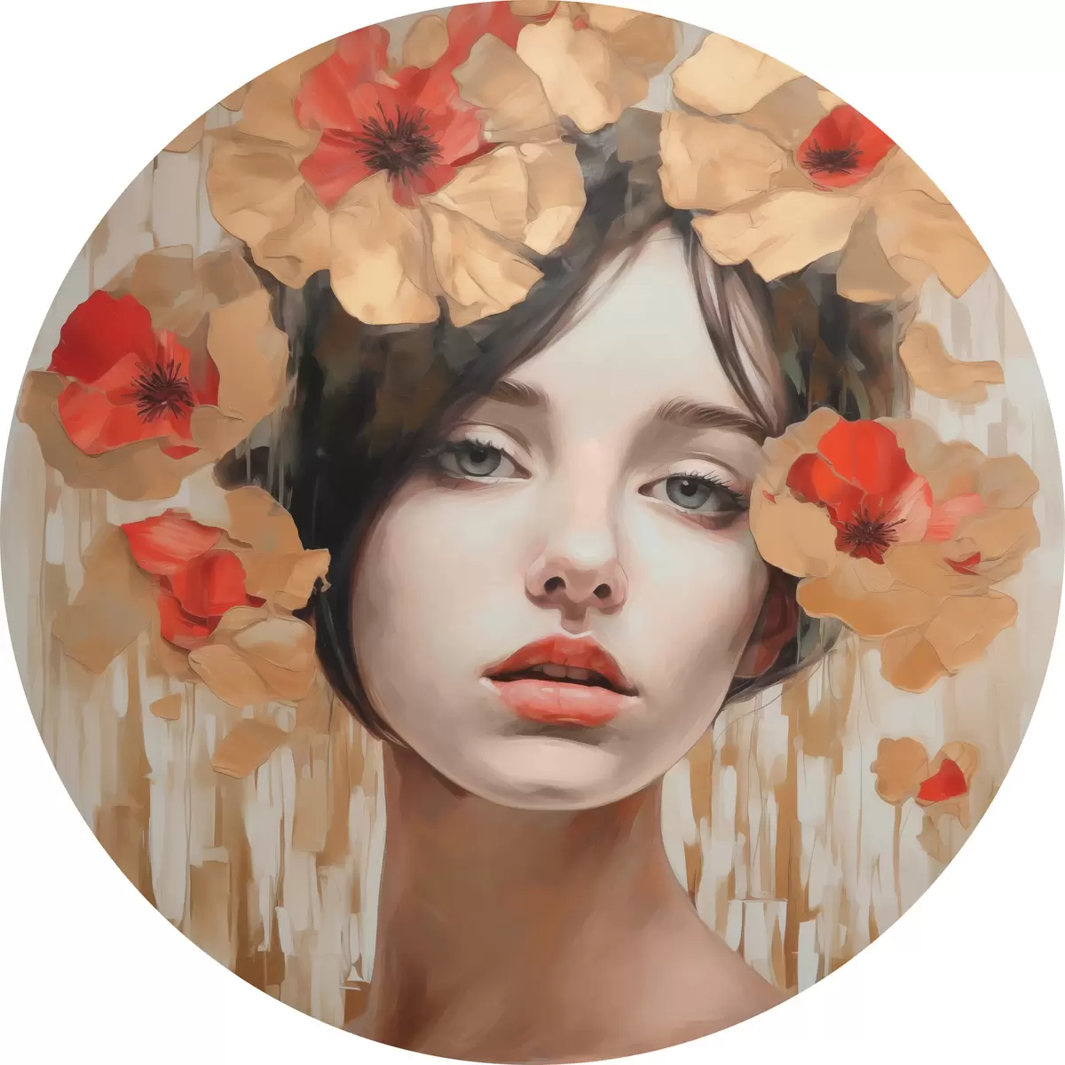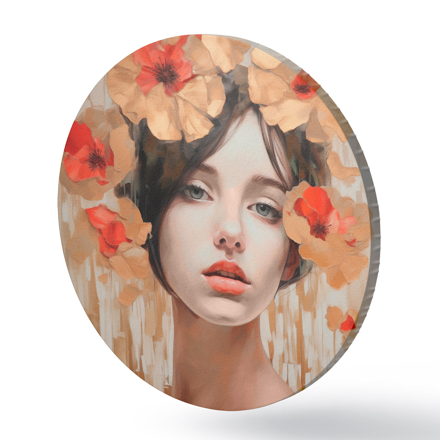 Picturi rotunde Portret de fată cu flori Nr r44593