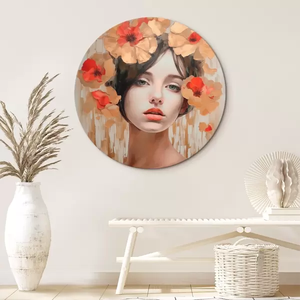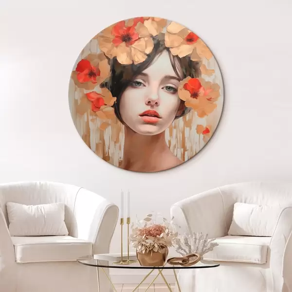 Picturi rotunde Portret de fată cu flori r44593