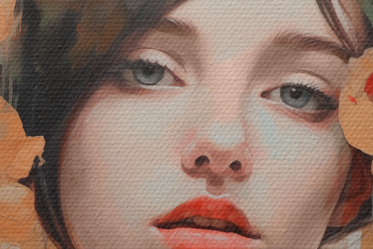 Țesătura fină a firelor de pe această pânză seamănă cu suprafața pânzelor artiștilor profesioniști.