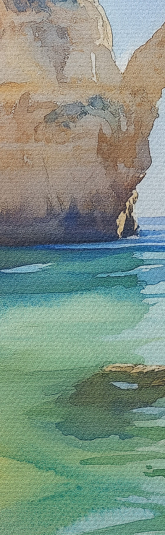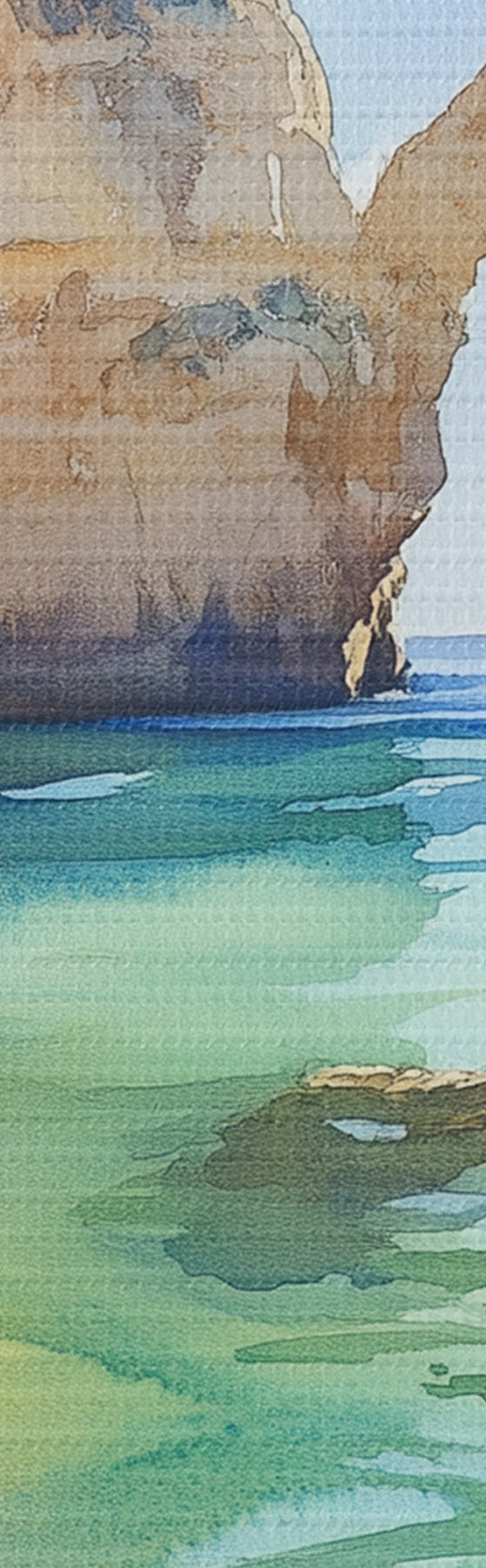 Picturi rotunde Plajă oceanică cu stânci, Portugalia, vară, acvamarin Nr r44608