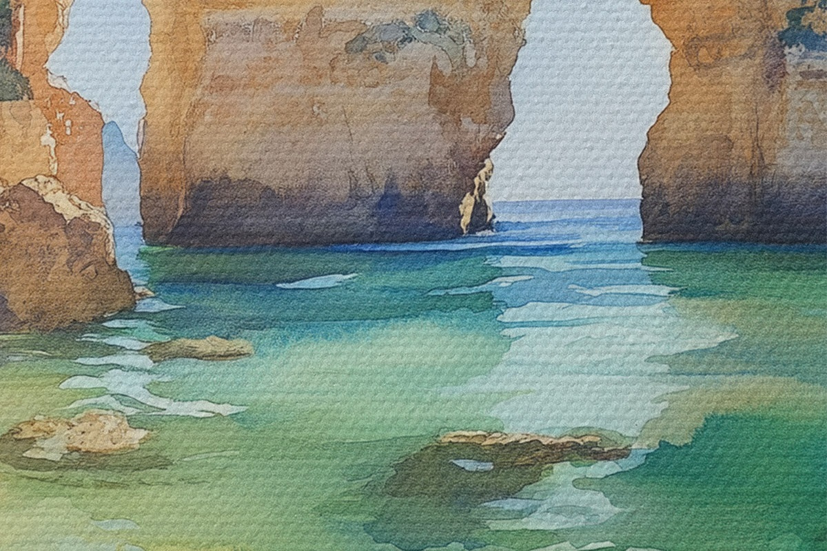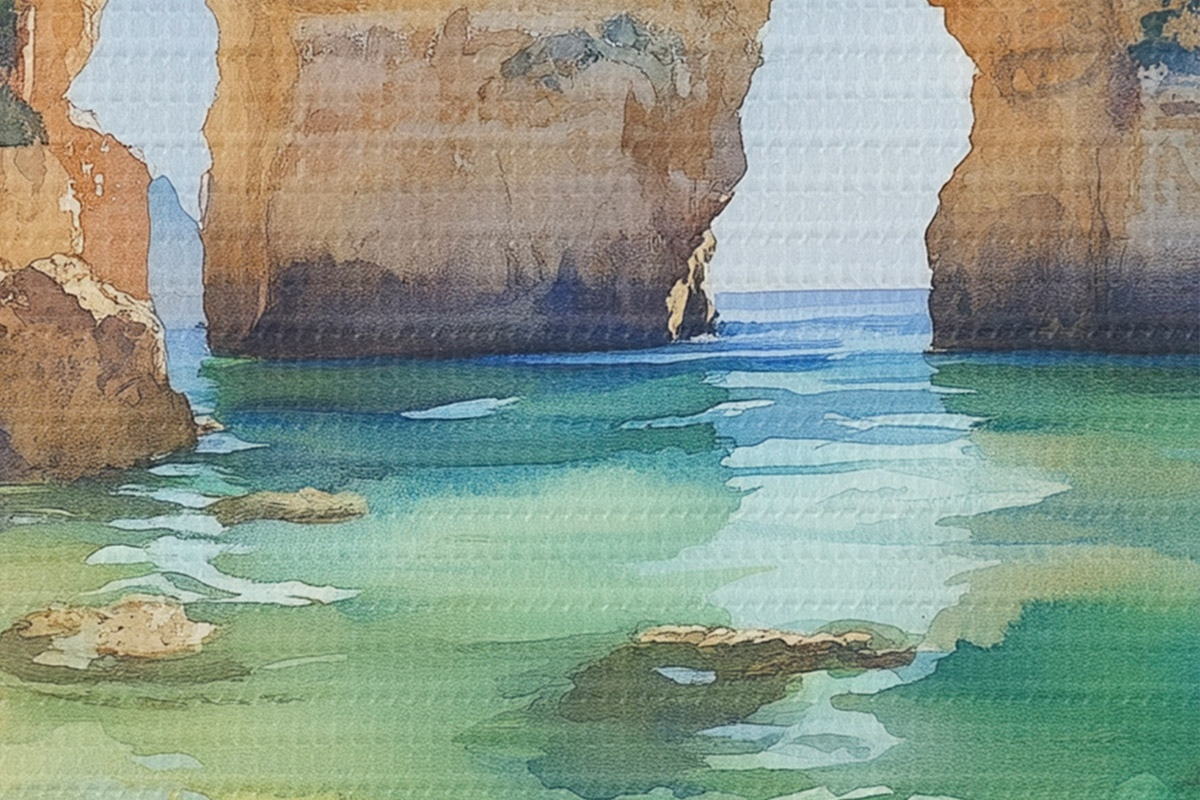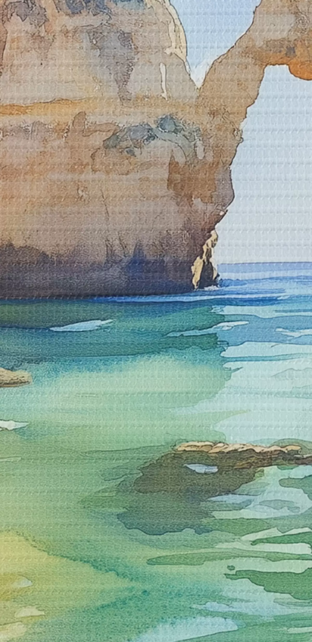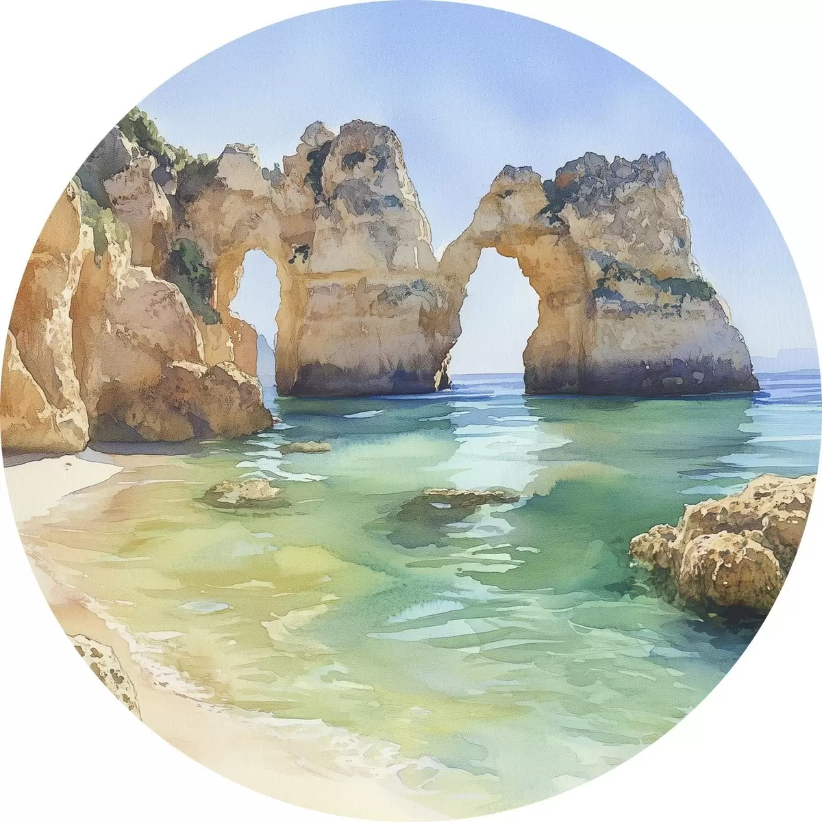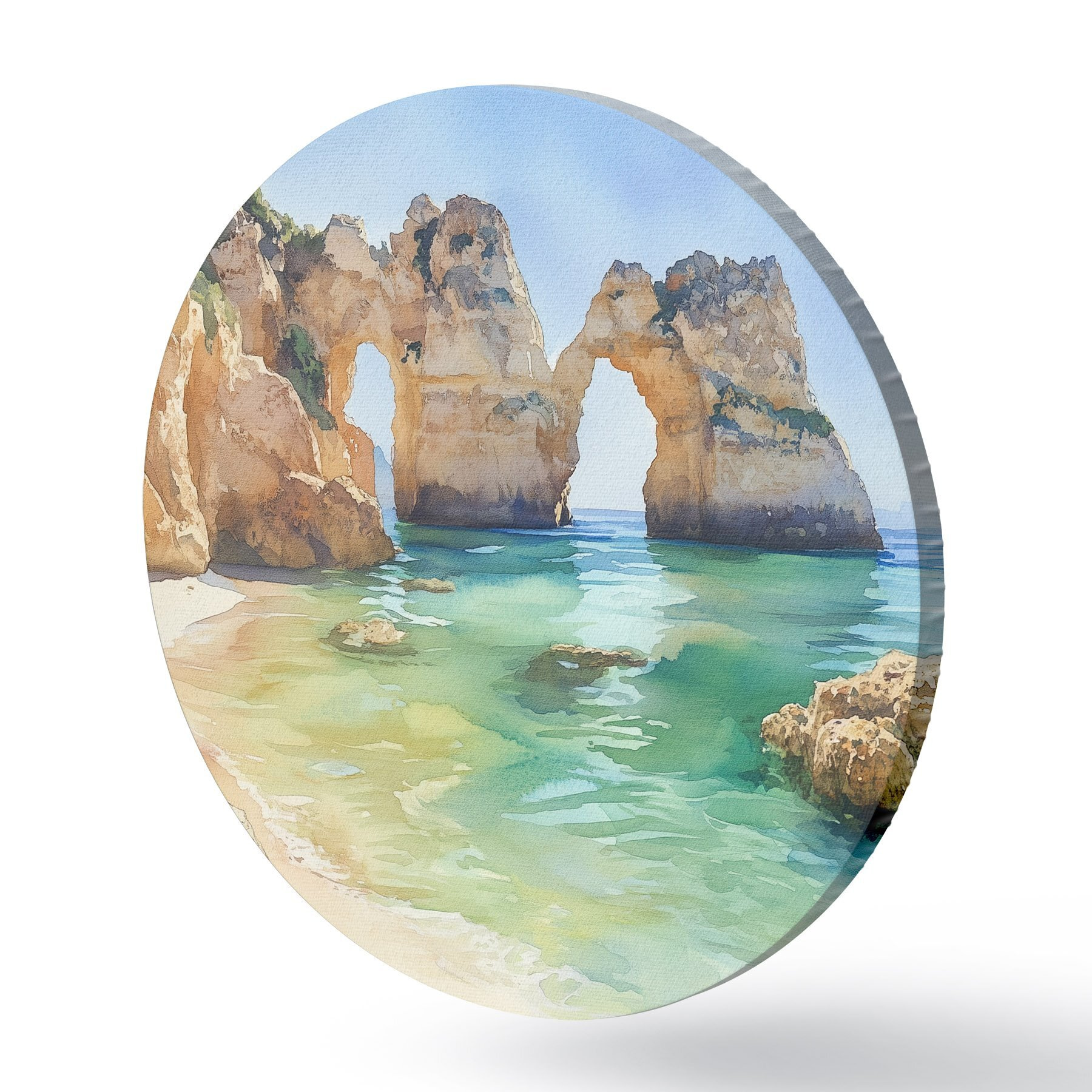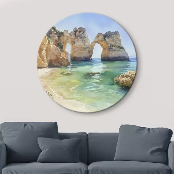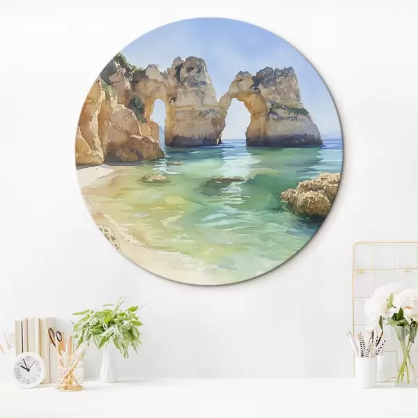 Picturi rotunde Plajă oceanică cu stânci, Portugalia, vară, acvamarin Nr r44608