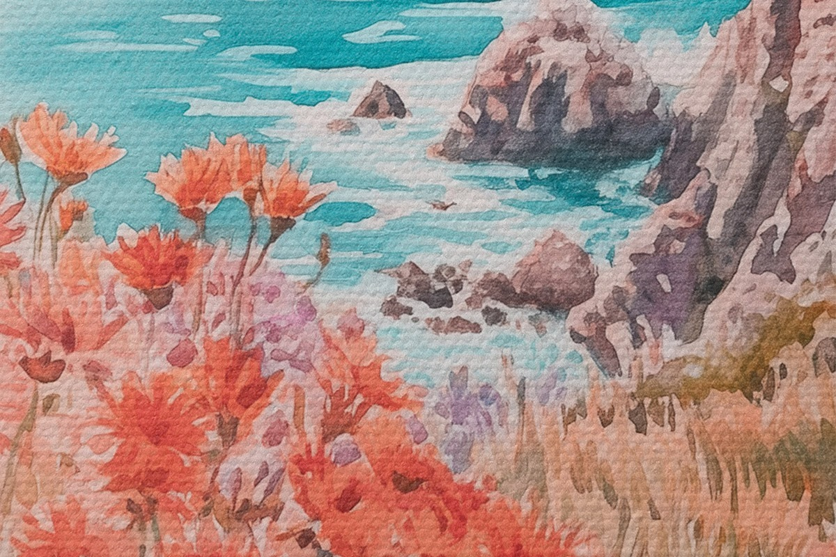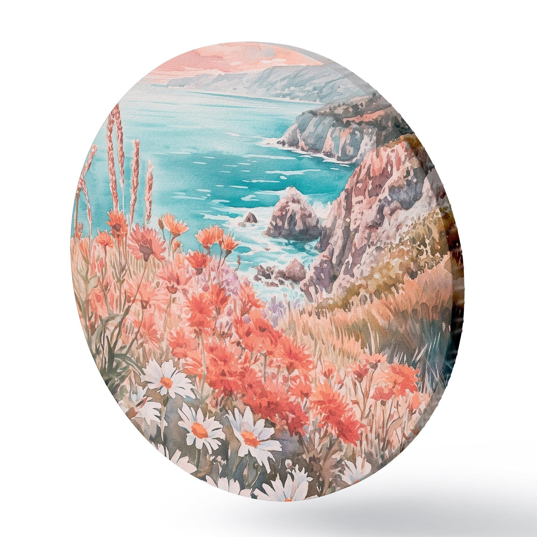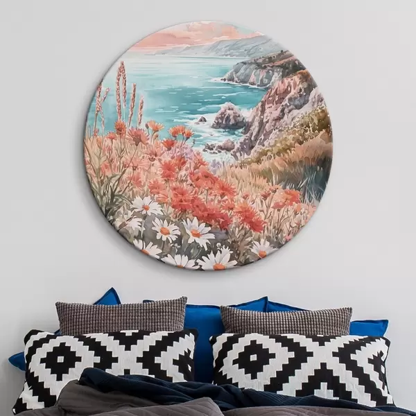 Picturi rotunde Portugalia coasta oceanului pe apus de soare, flori de pajiște r44612