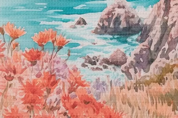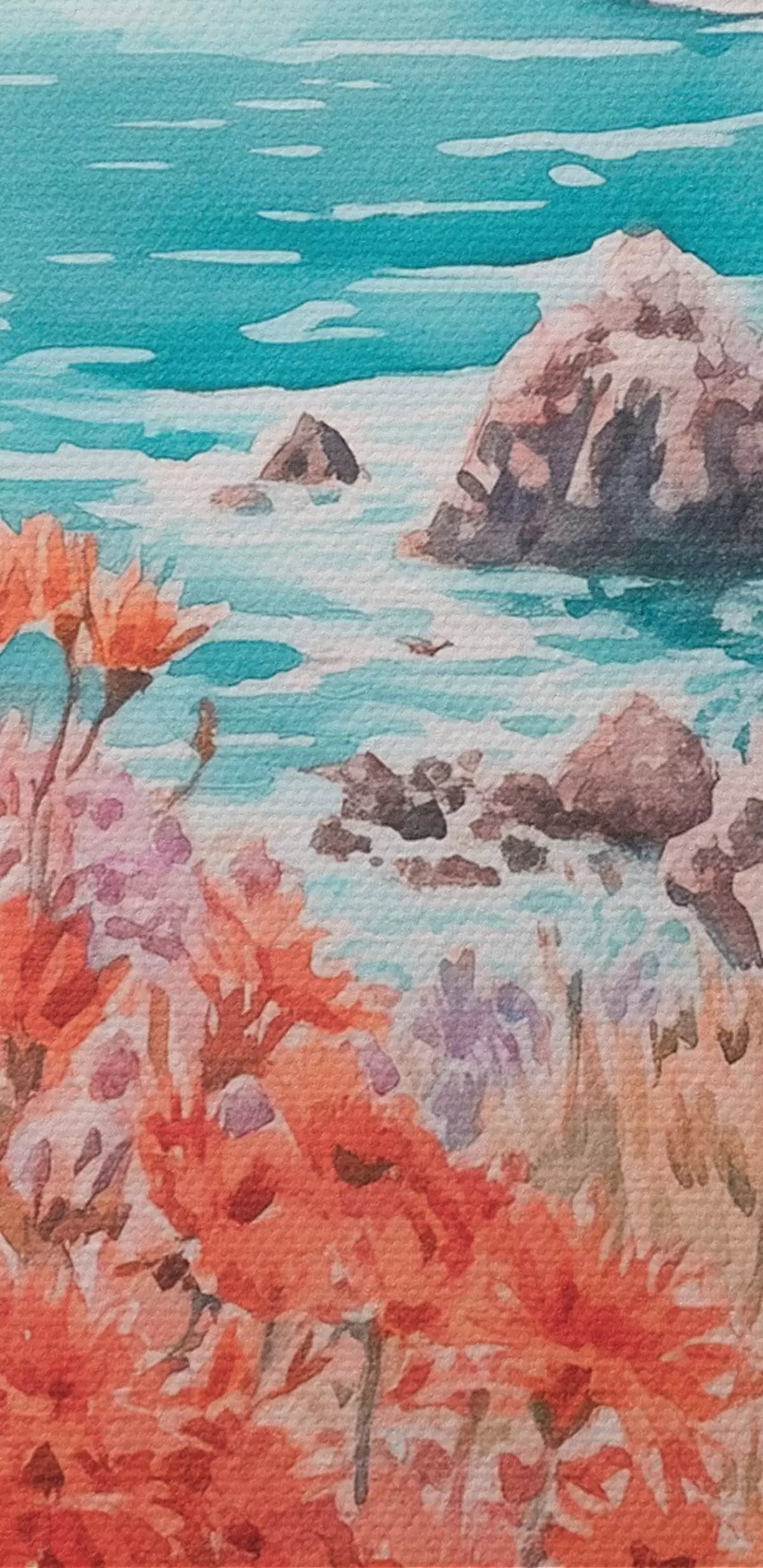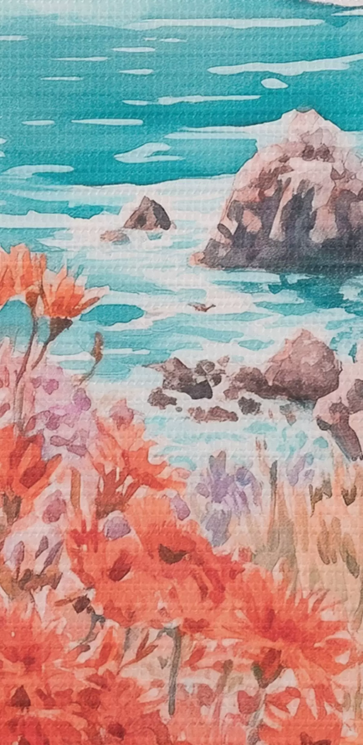 Picturi rotunde Portugalia coasta oceanului pe apus de soare, flori de pajiște Nr r44612
