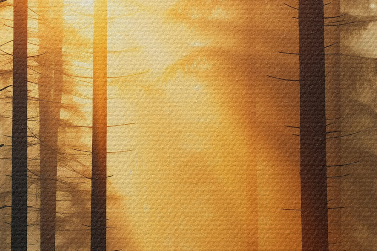 Picturi rotunde Pădure de pin densă cu lumina apusului de soare, realism, natură r44615