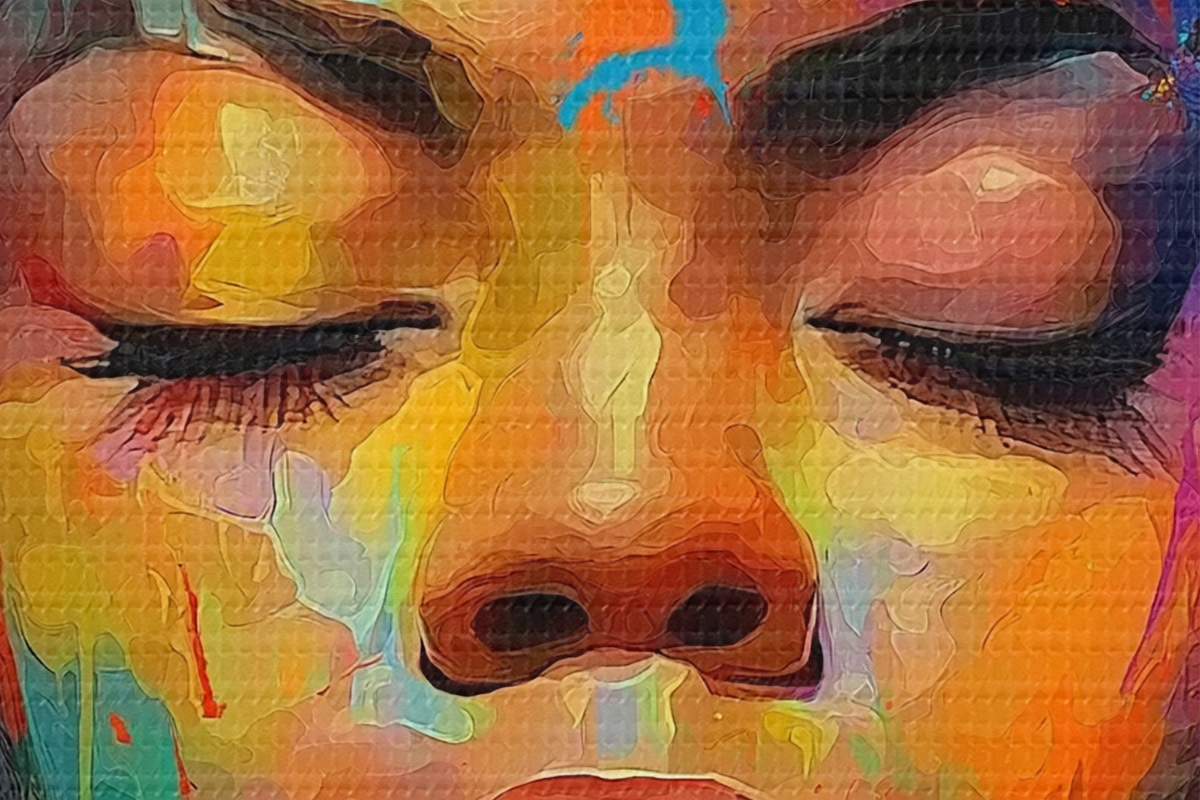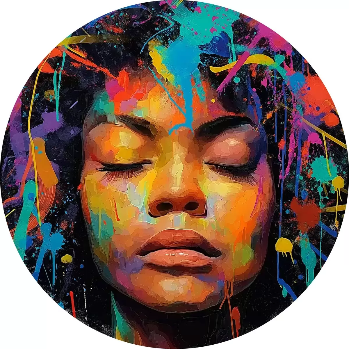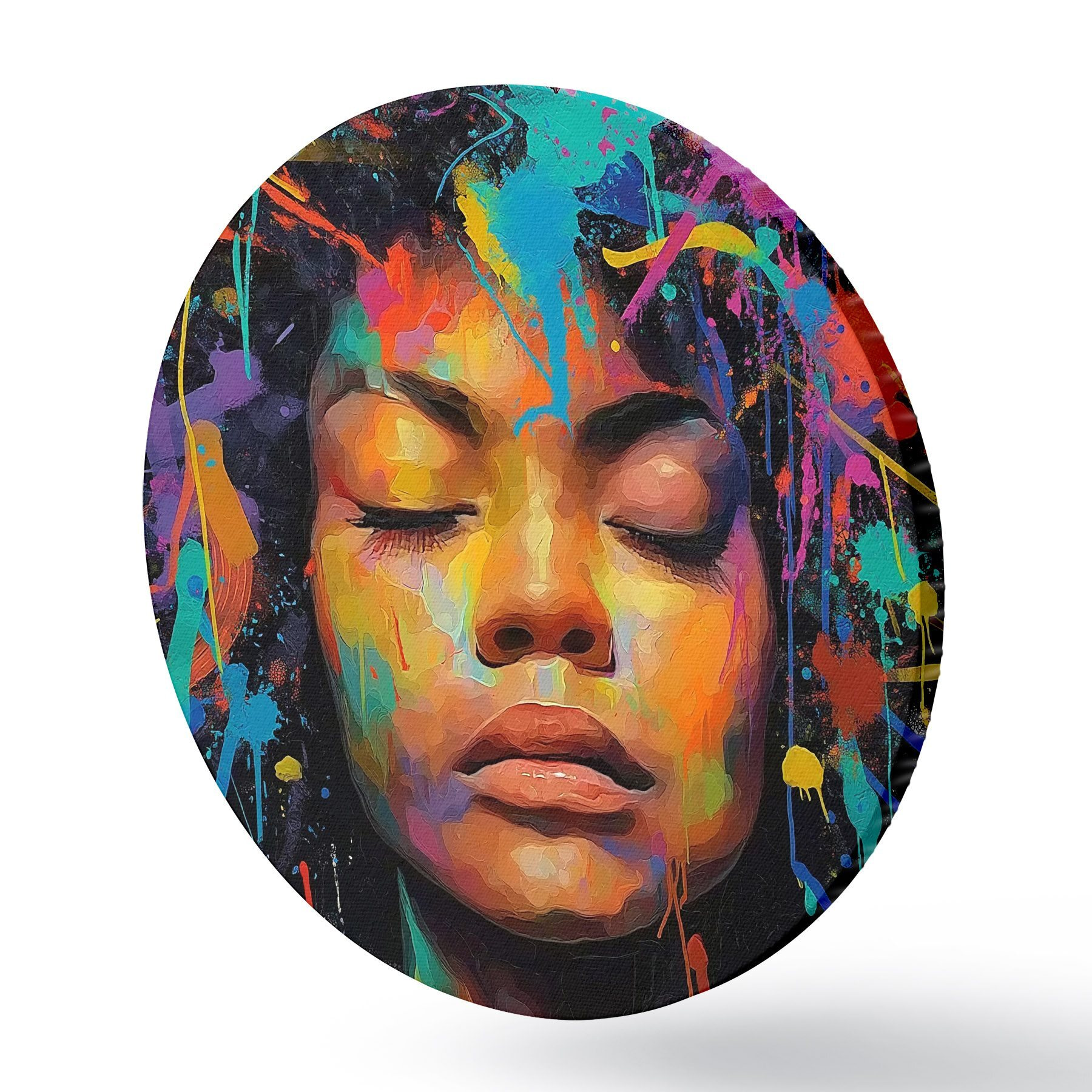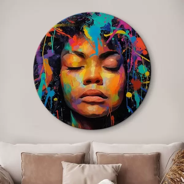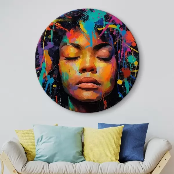 Picturi rotunde Fată în culori luminoase, stil abstract r44618