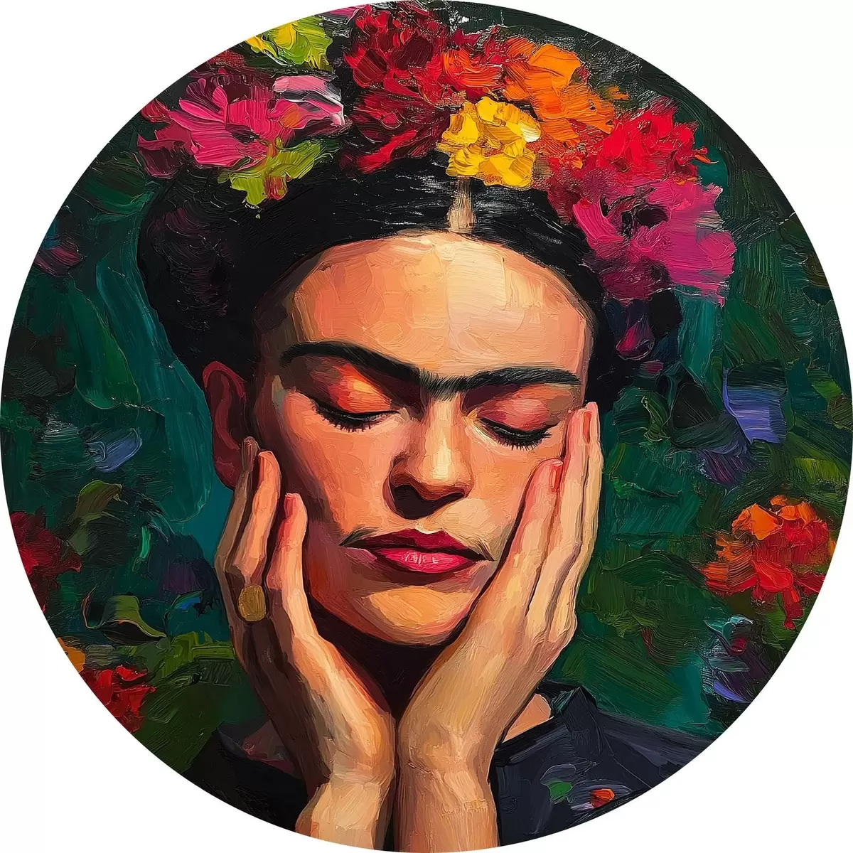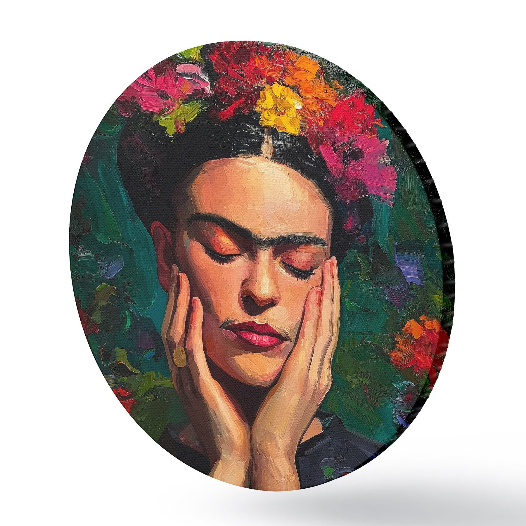 Picturi rotunde Femeie cu flori, stil pictural Nr r44628