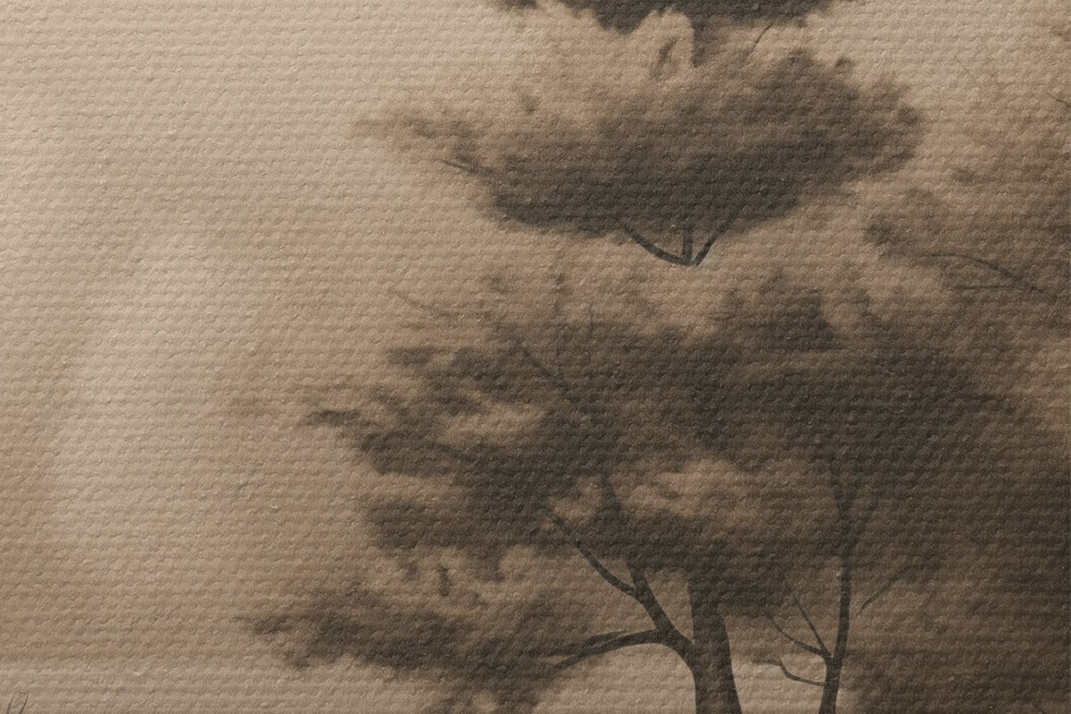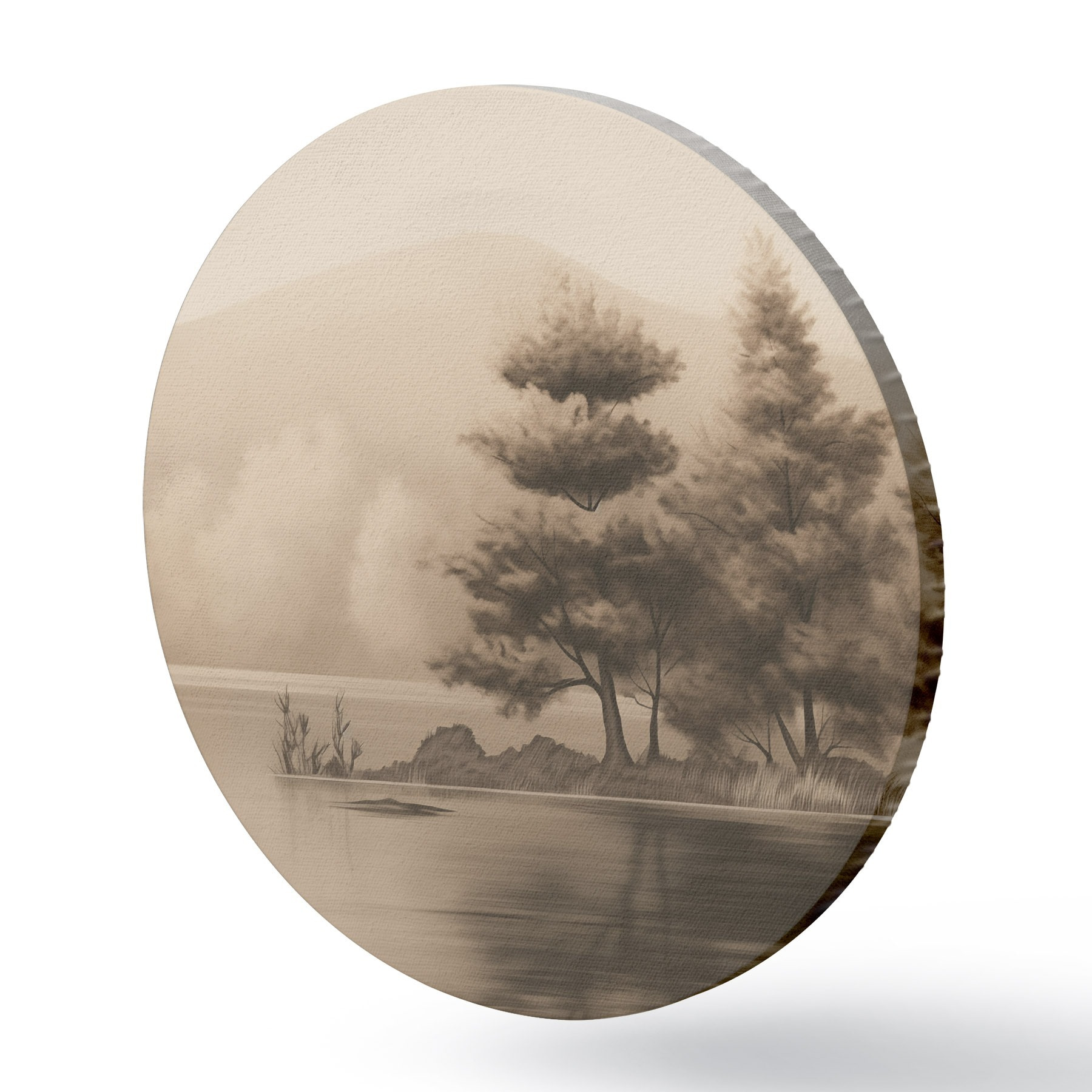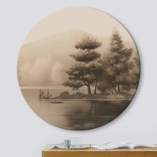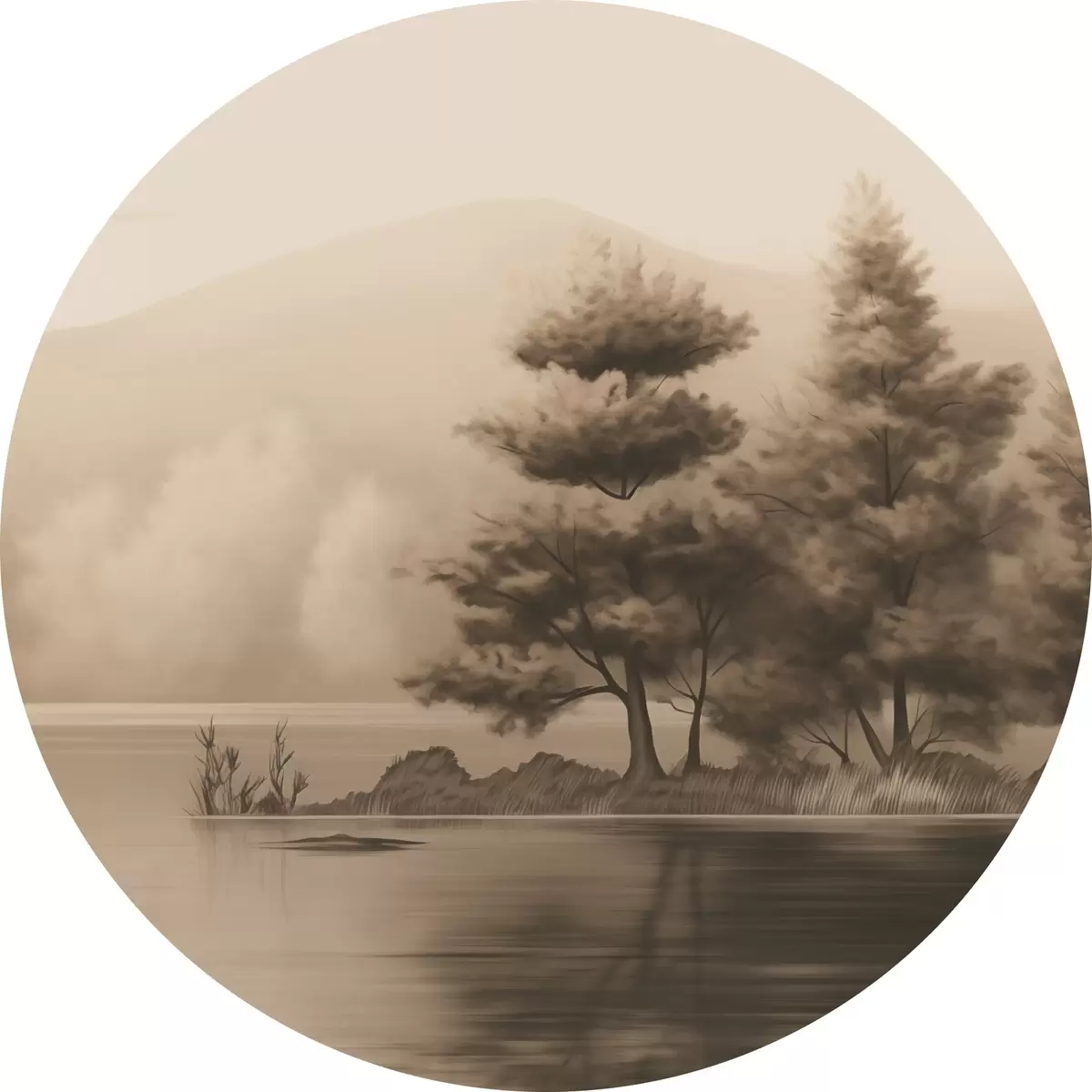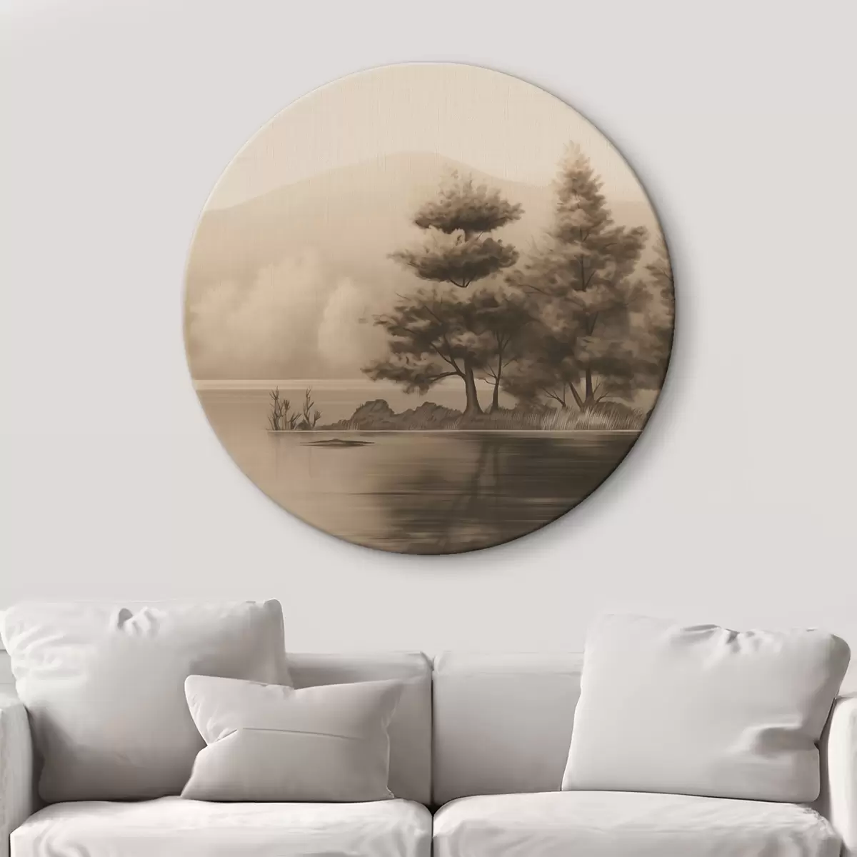 Picturi rotunde Lac și copaci în sepia Nr r44633