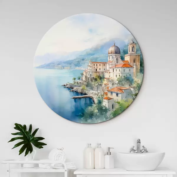 Picturi rotunde Orașul de mare imitație de acuarelă Nr r44635
