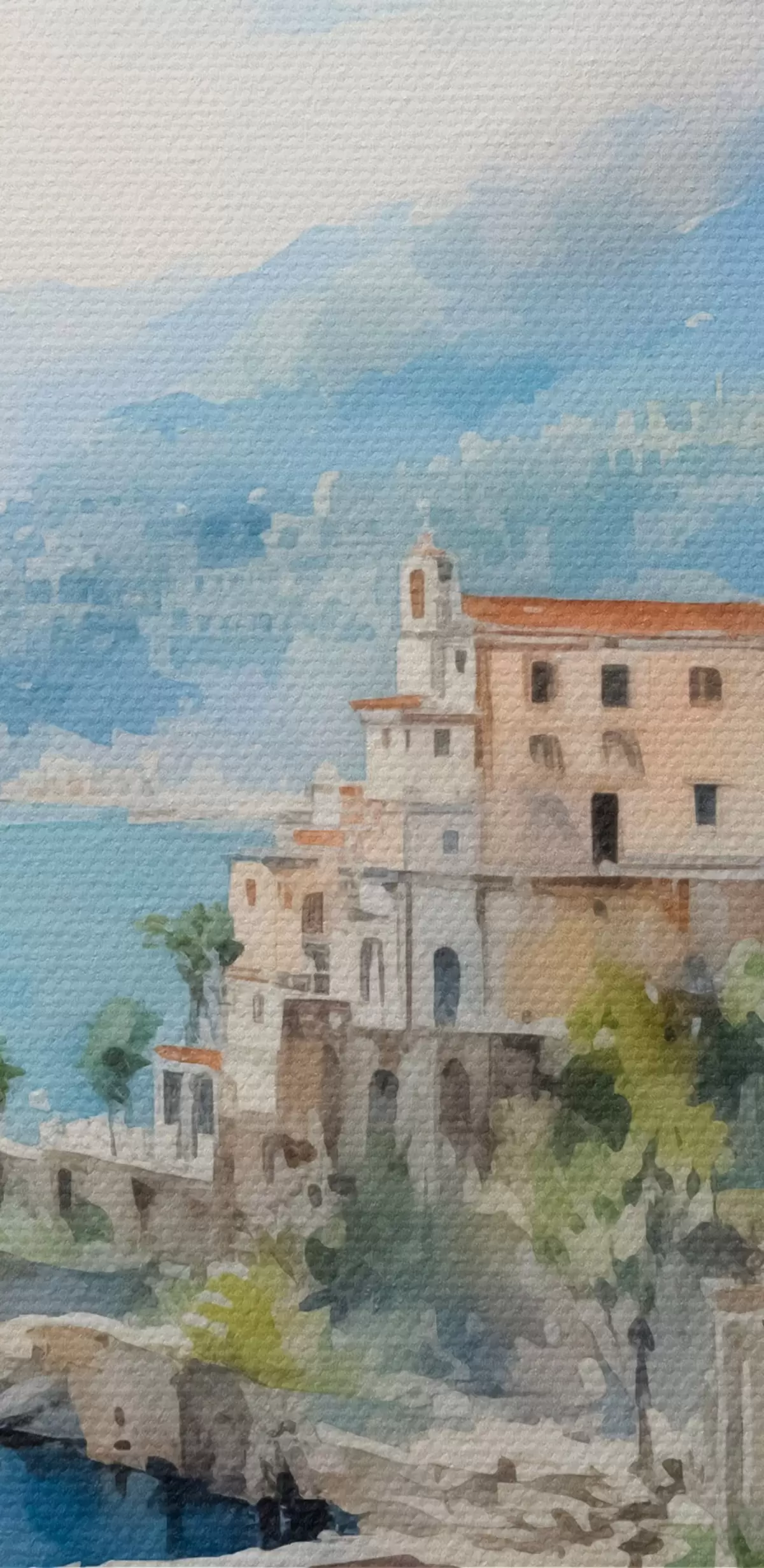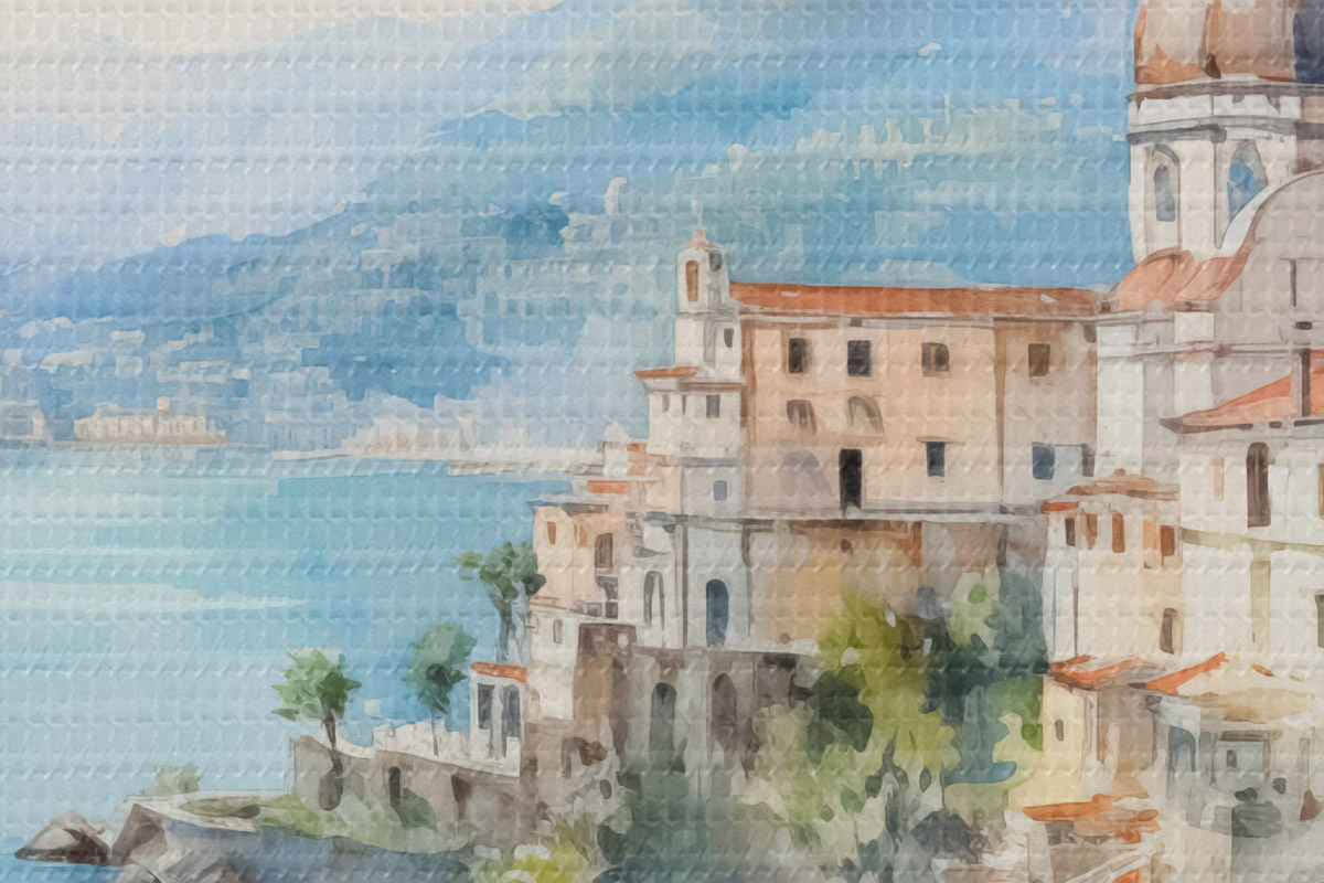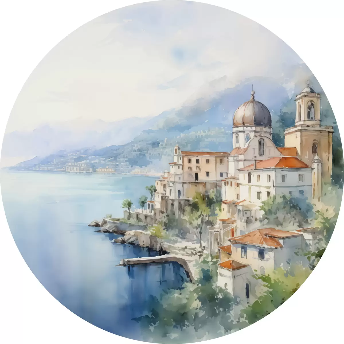 Picturi rotunde Orașul de mare imitație de acuarelă Nr r44635