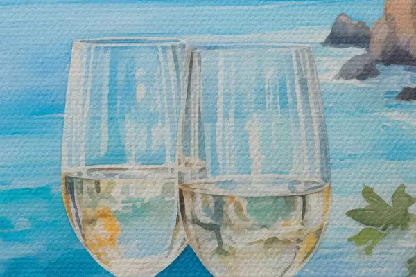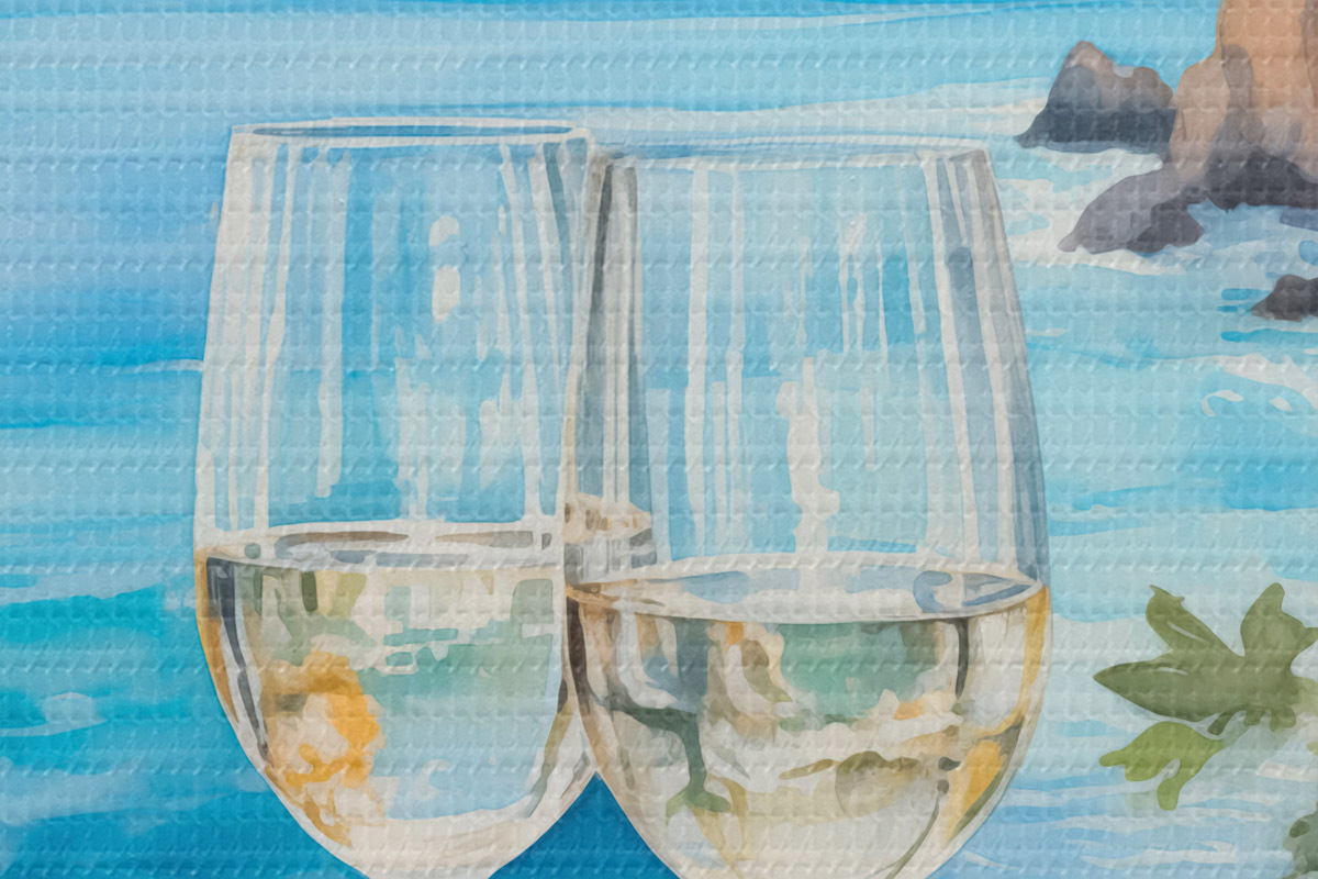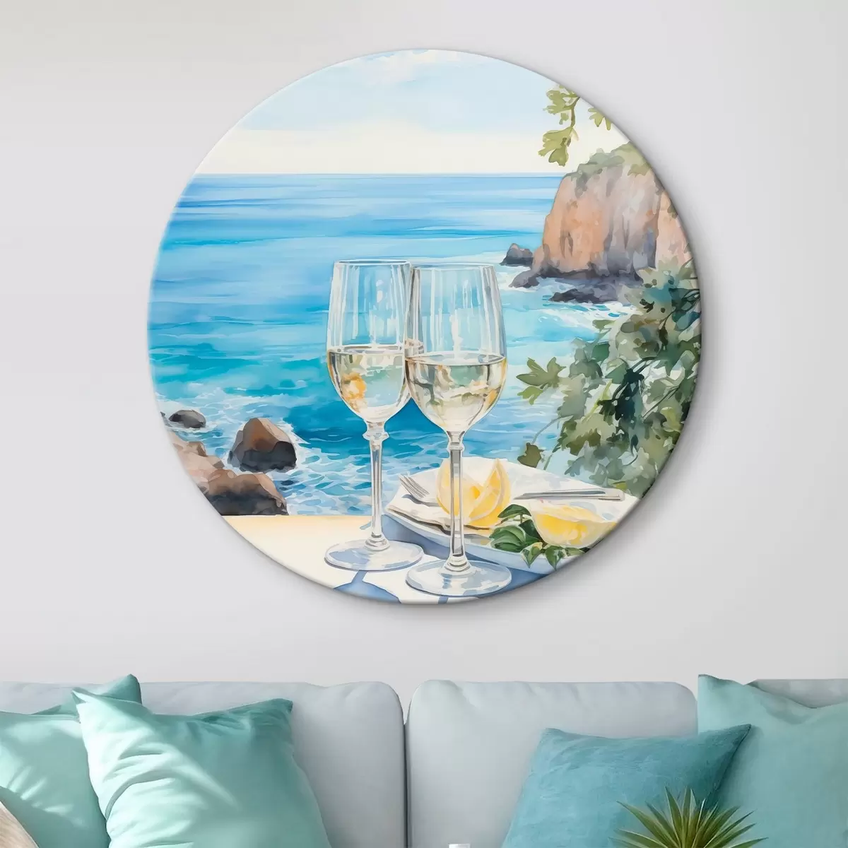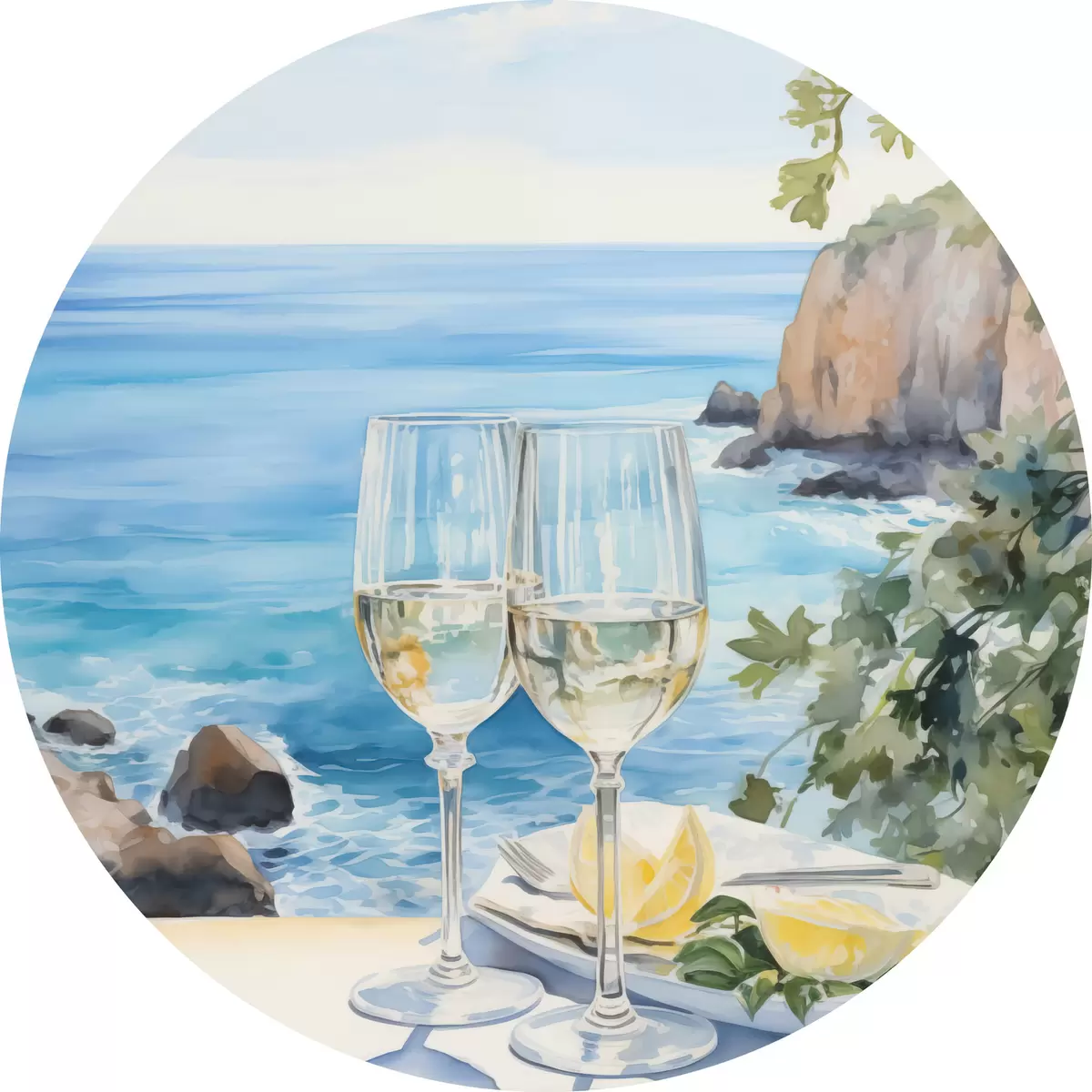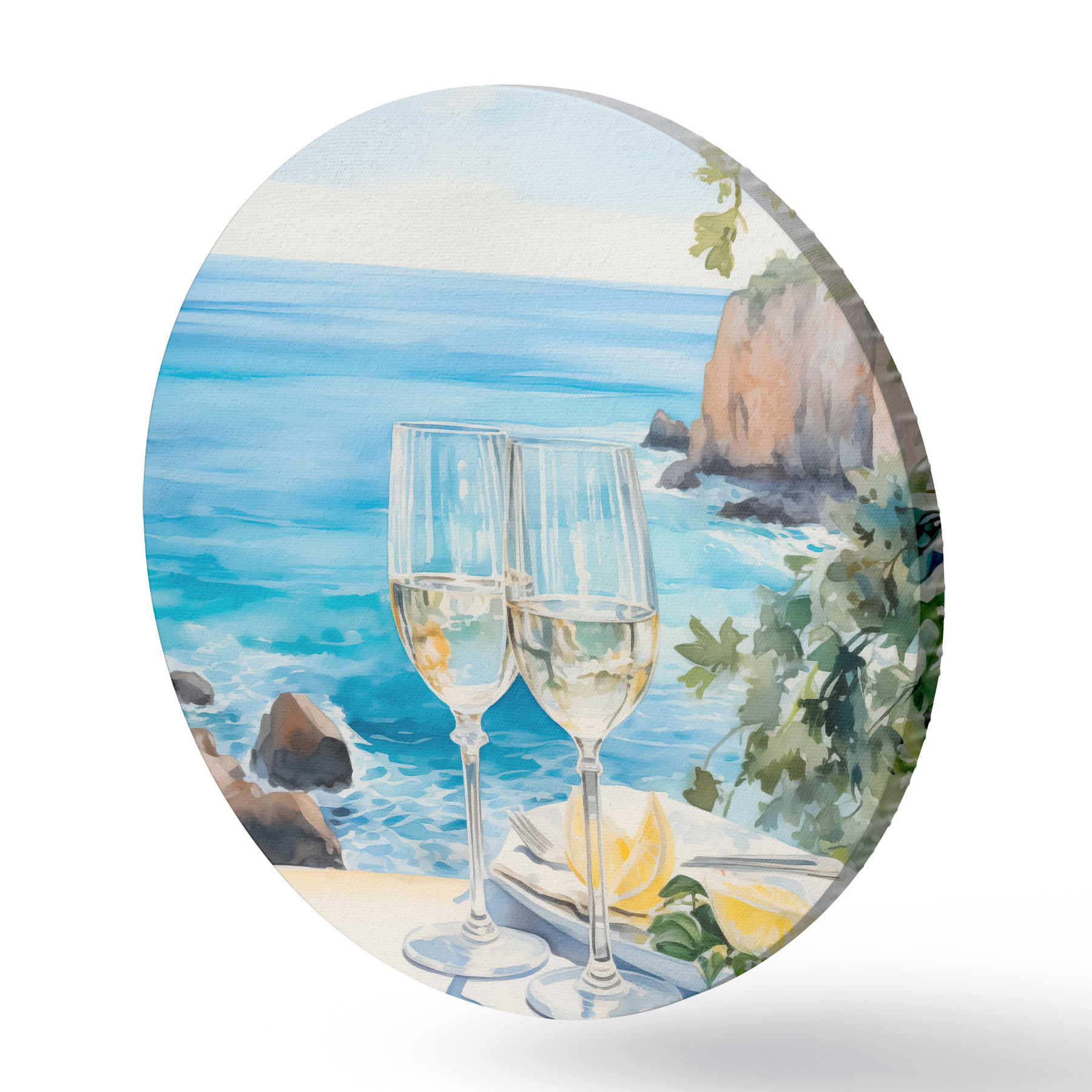 Picturi rotunde Pahare de vin pe malul mării r44644
