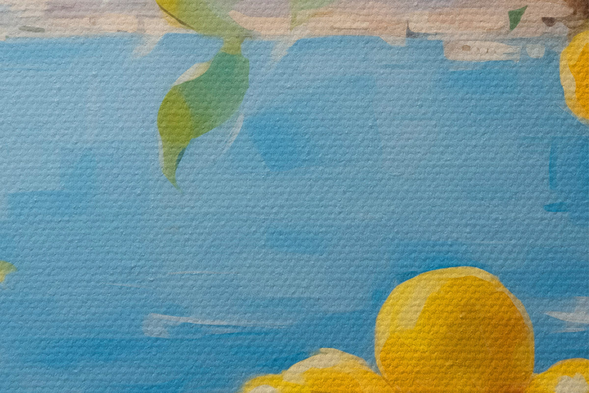 Țesătura fină a firelor de pe această pânză seamănă cu suprafața pânzelor artiștilor profesioniști.