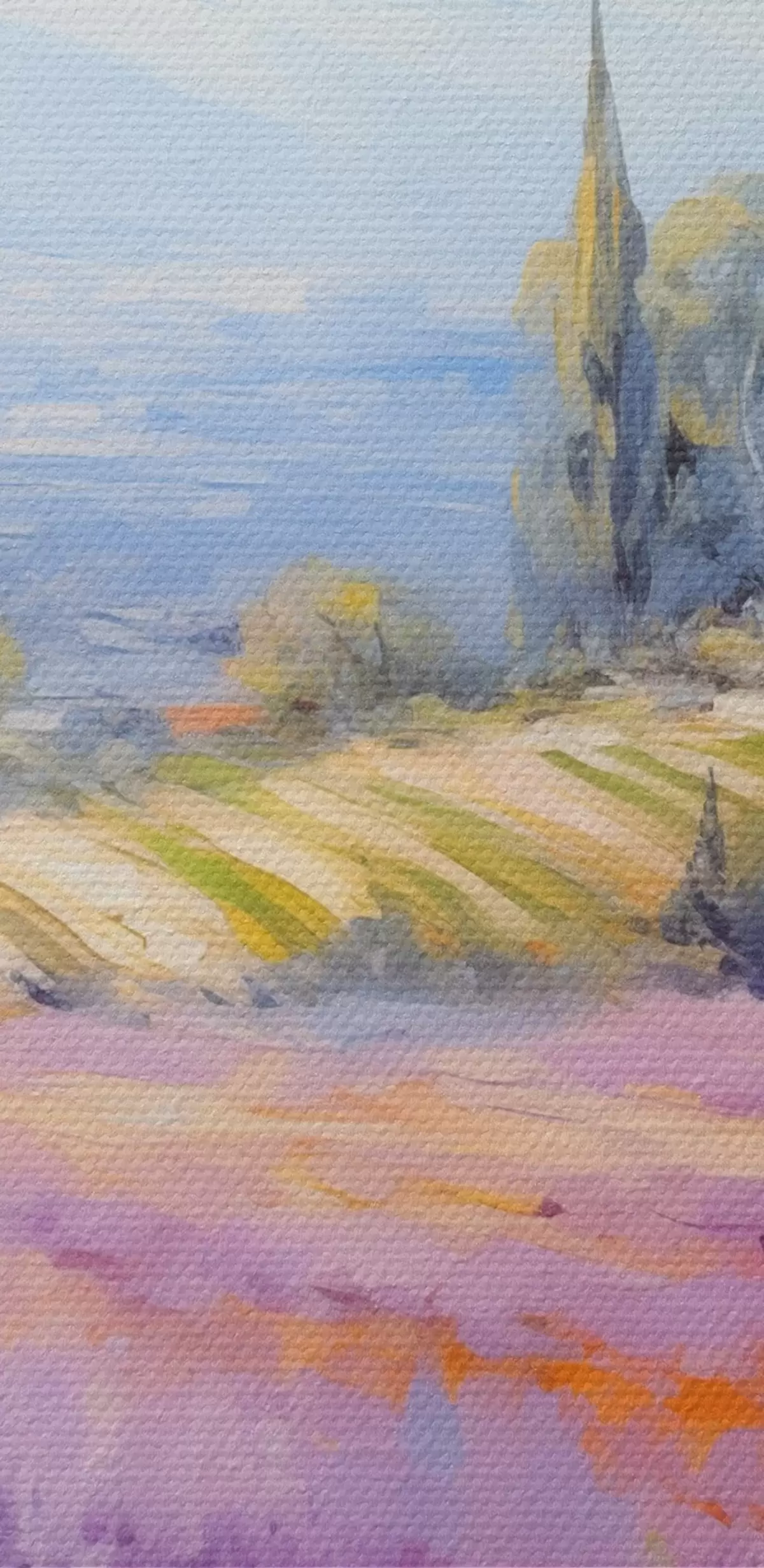 Țesătura fină a firelor de pe această pânză seamănă cu suprafața pânzelor artiștilor profesioniști.
