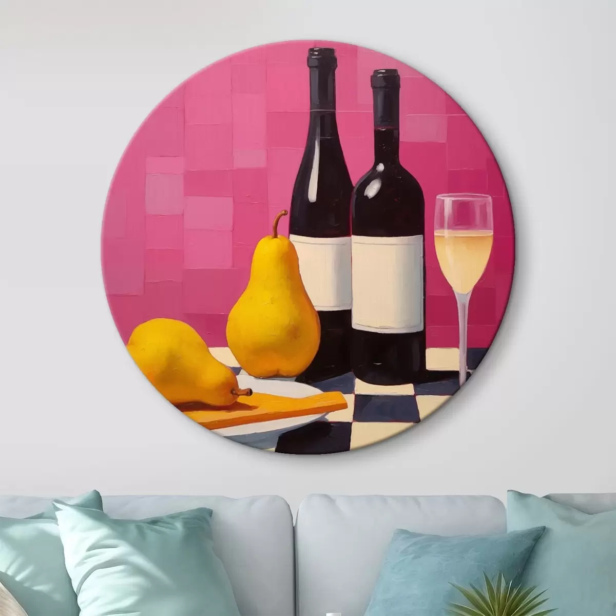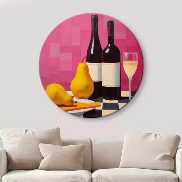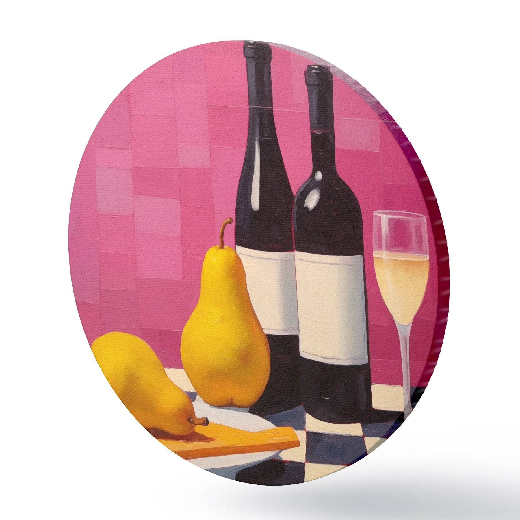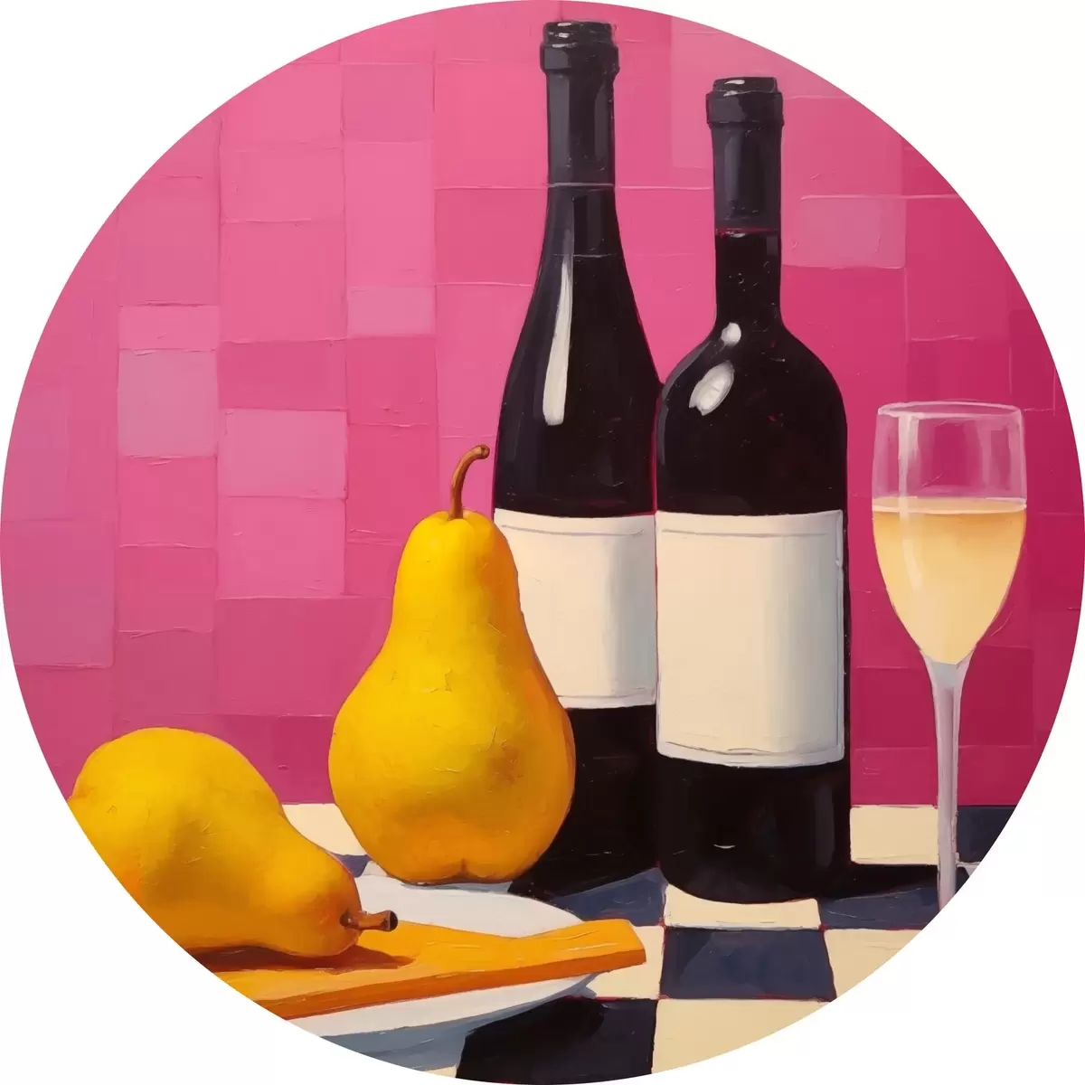Picturi rotunde Pere, un pahar de vin și două sticle de vin Nr r44683