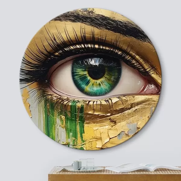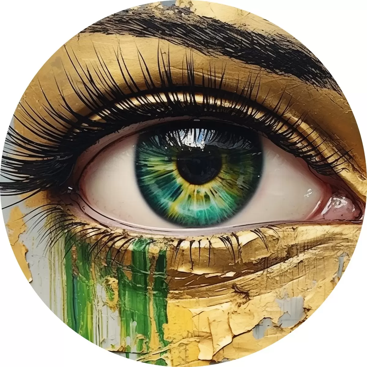 Picturi rotunde Ochi verde pe fondul de vopsea crăpată Nr r44690
