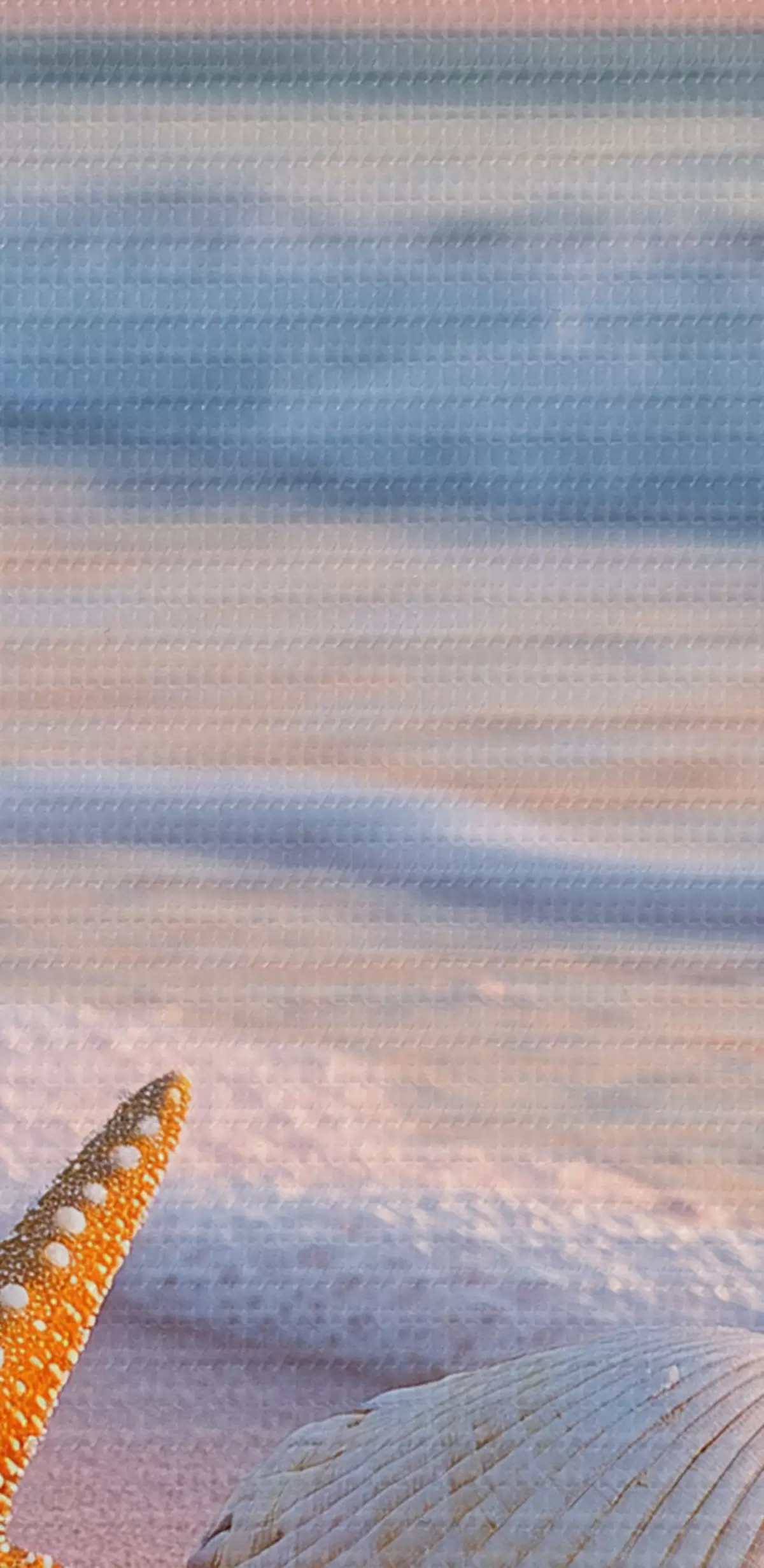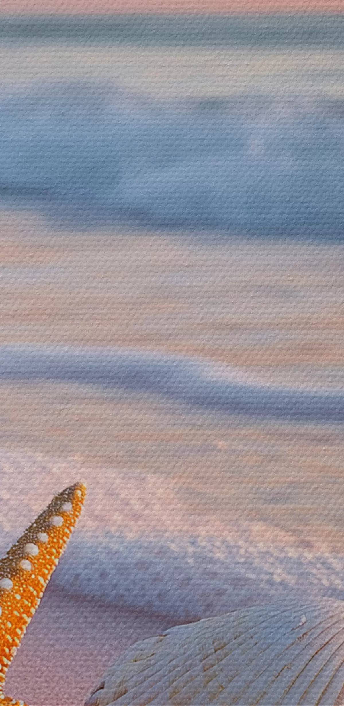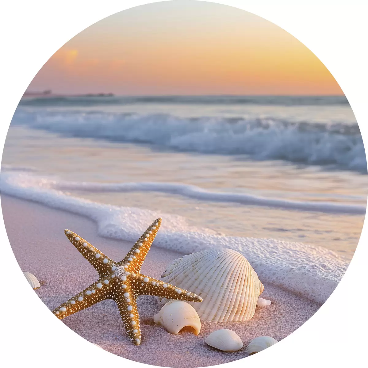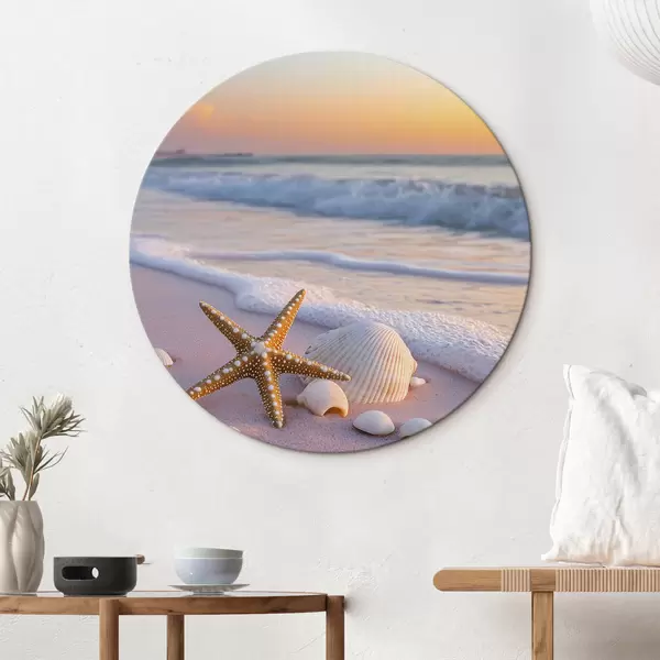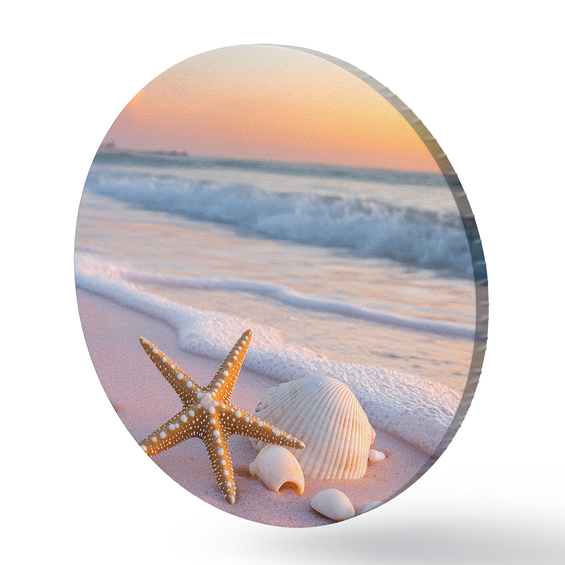 Picturi rotunde Coastă de mare cu stele de mare, scoici și valuri Nr r44714