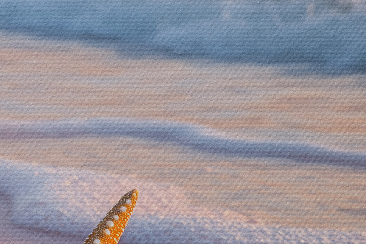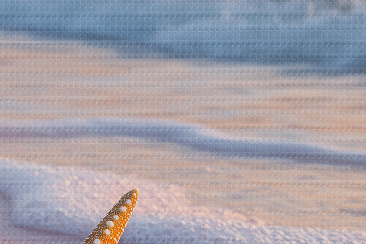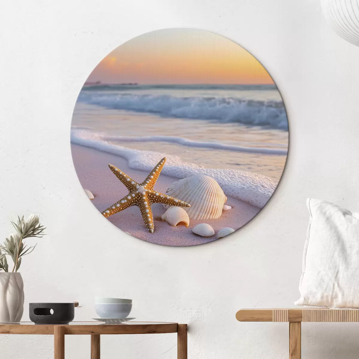 Picturi rotunde Coastă de mare cu stele de mare, scoici și valuri r44714